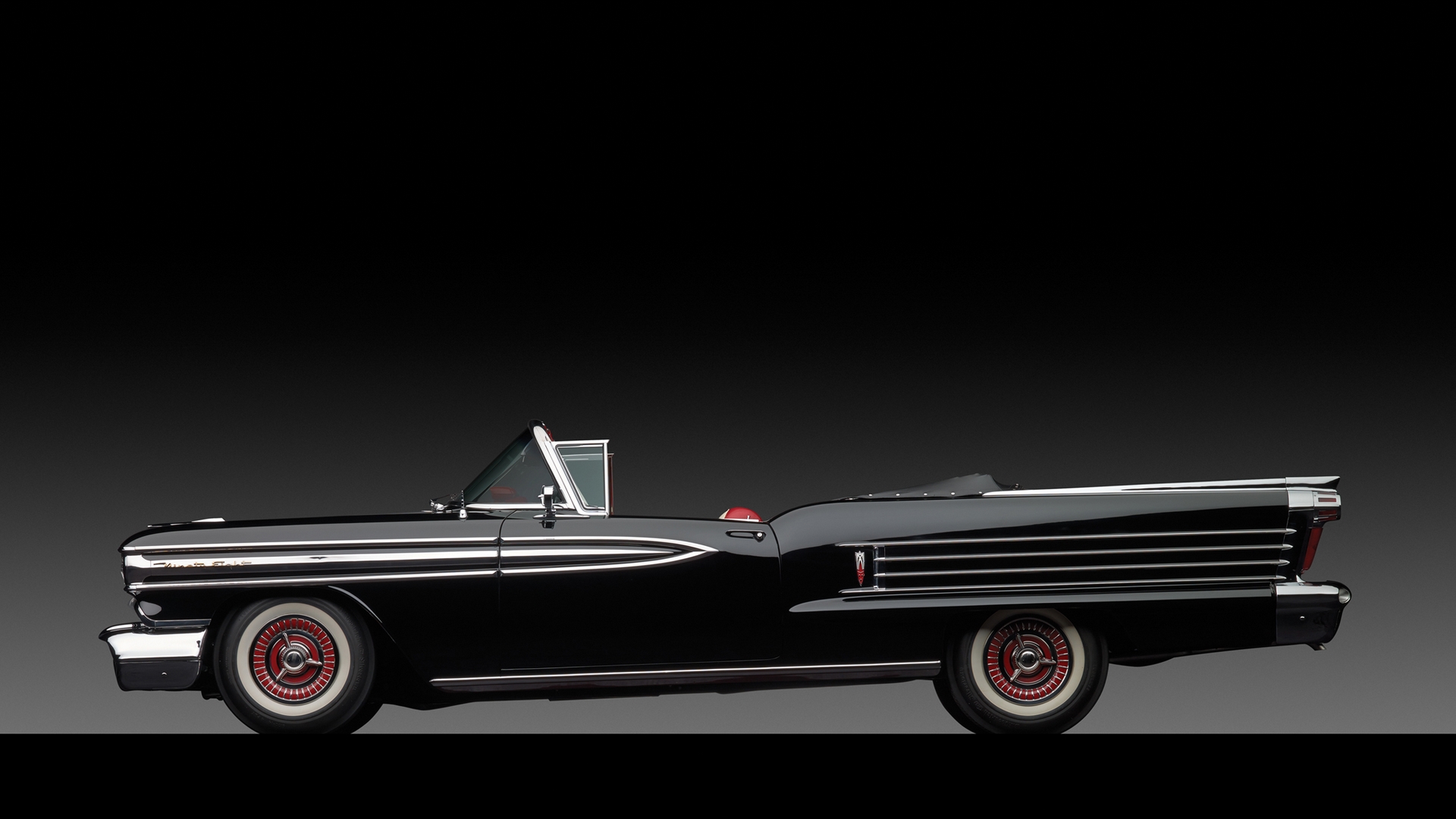 Description: A black and white car with a red rim and a black background with a black background and a black background with a black car and white background.