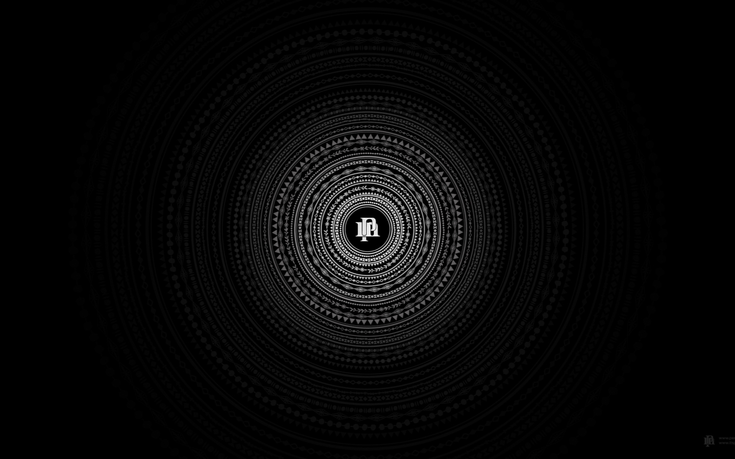 Description: A black and white photo of a circle with a letter in it's center and a small white letter in the middle.