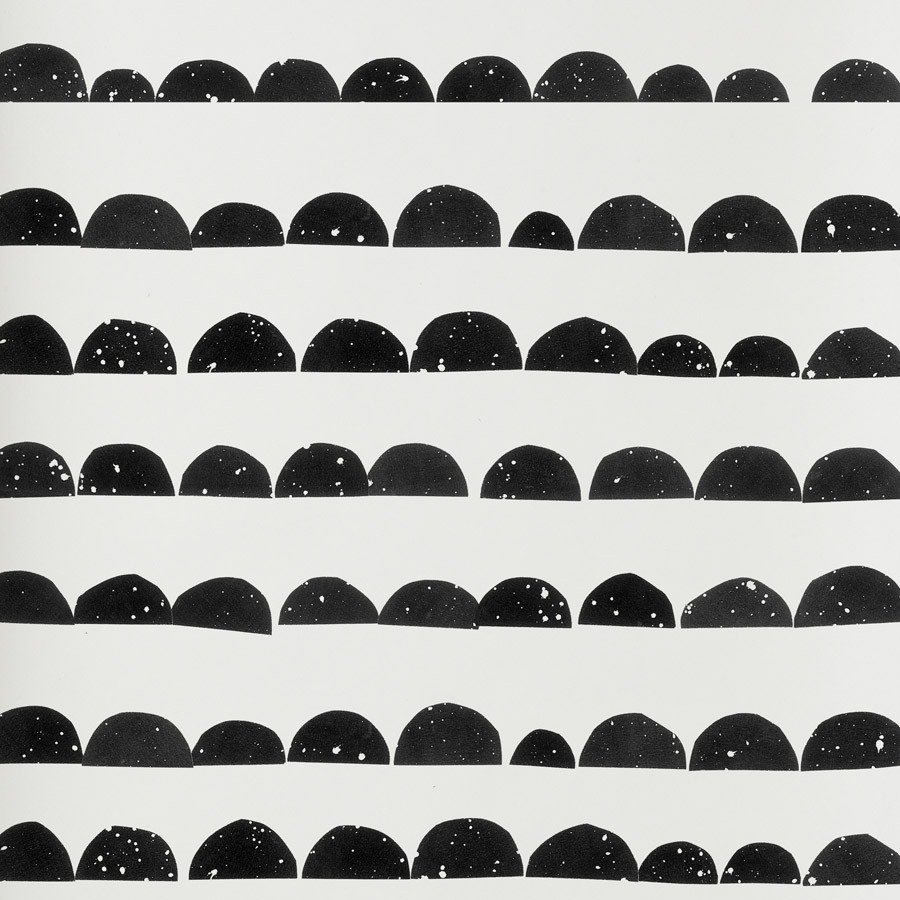 Description: A black and white photo of a row of black and white circles with snow on them.