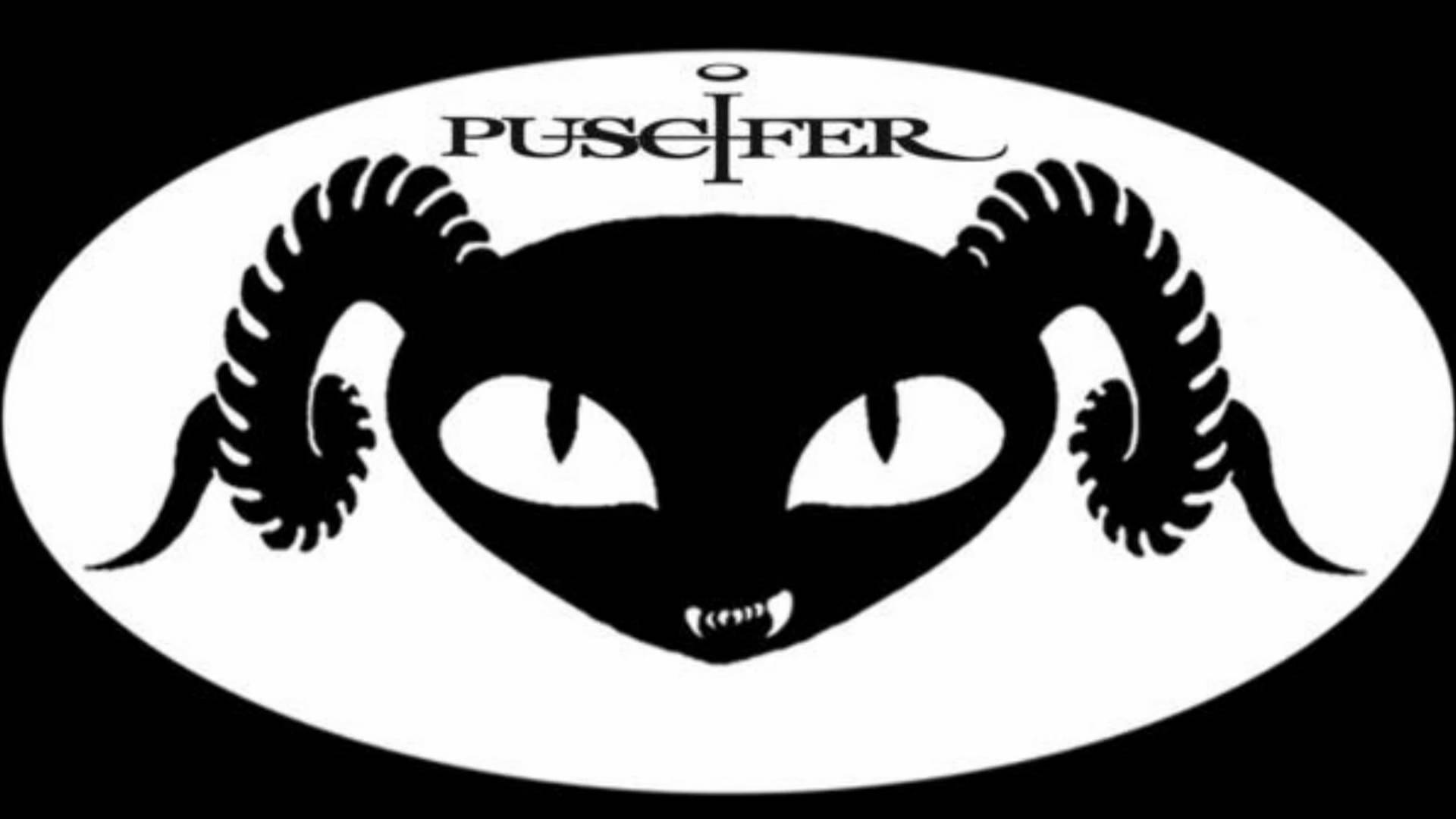 Description: A black and white logo with a demon face on it's side.