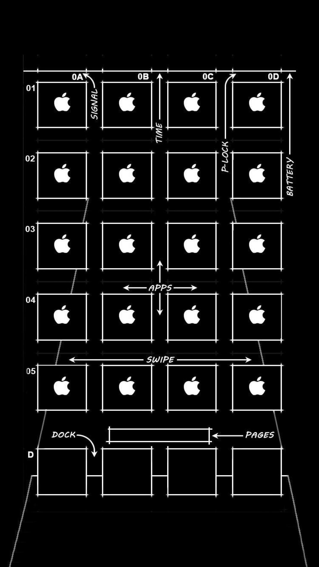 Description: A black and white diagram of a computer system with apple logos on it and a line of apple logo.