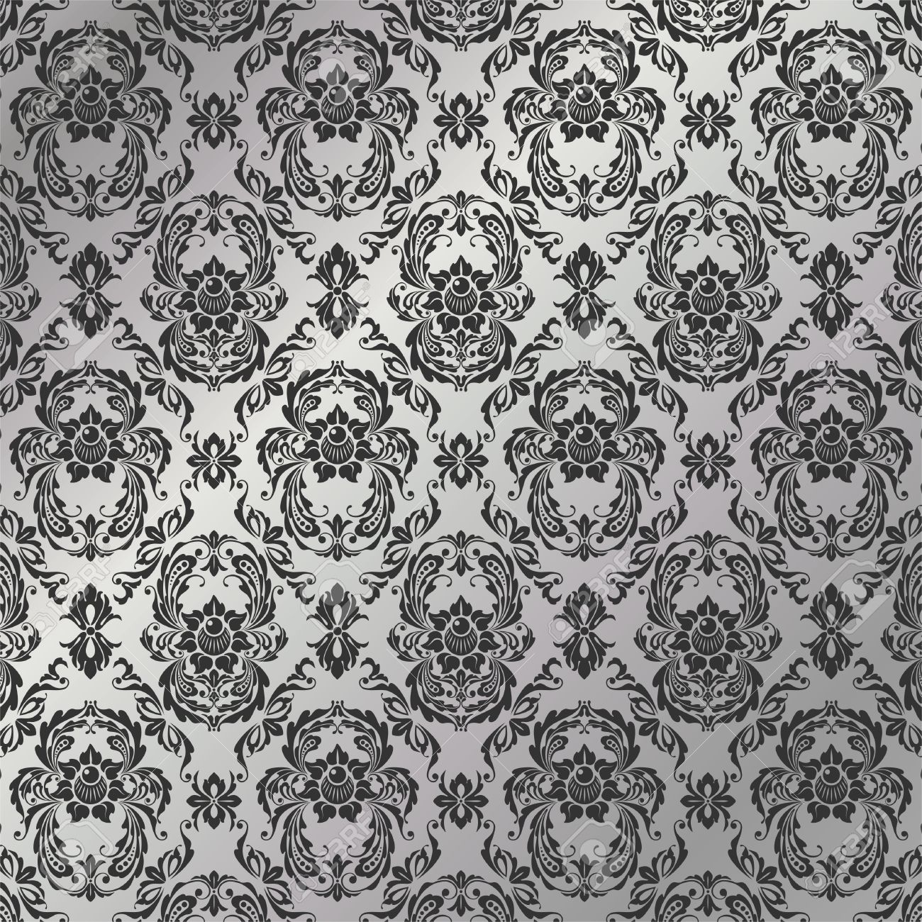 Description: A black and white wallpaper with a pattern of flowers and leaves on it's surface.