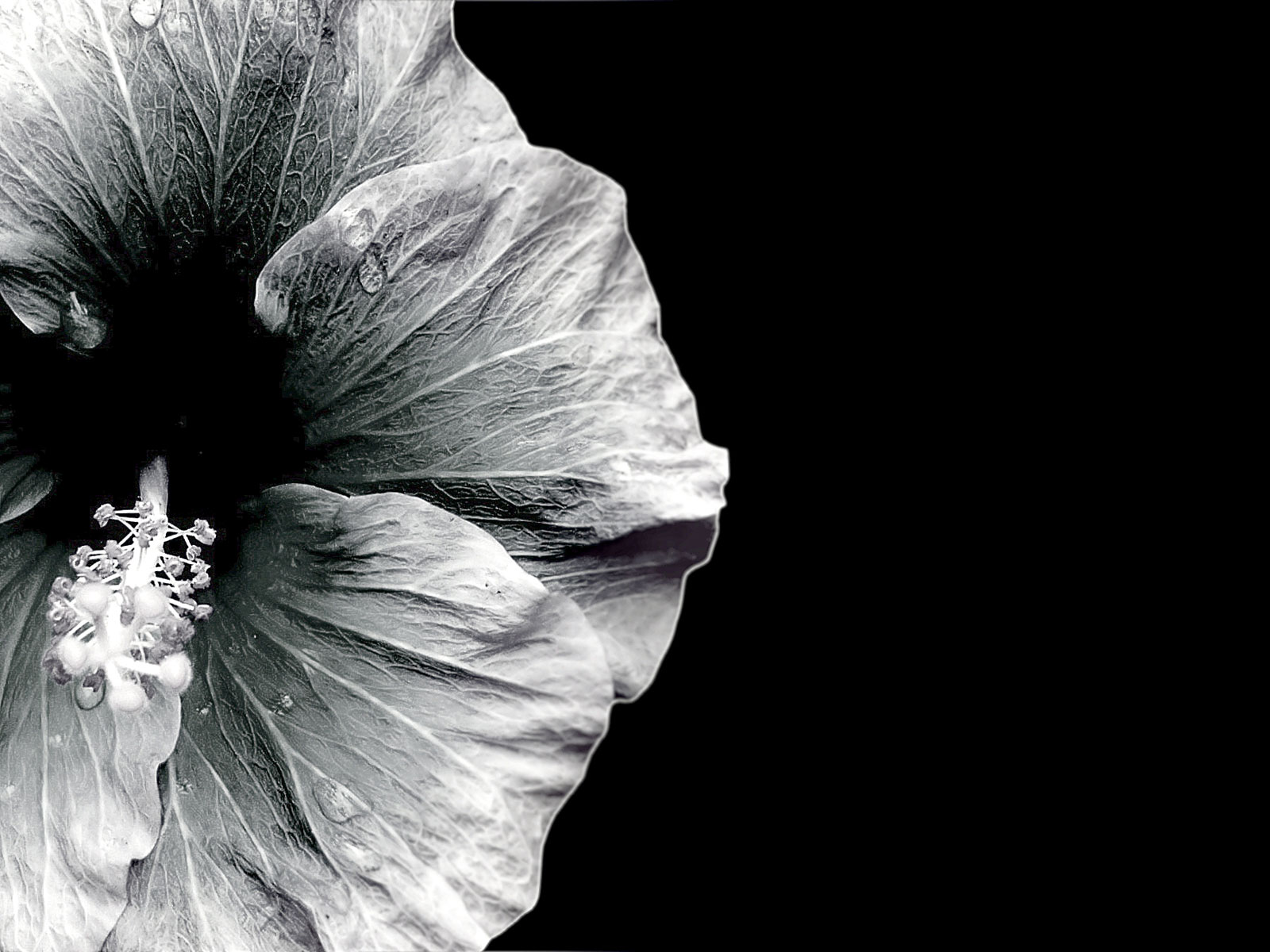 Description: A black and white photo of a flower with a black background and a white center flower with a white center.