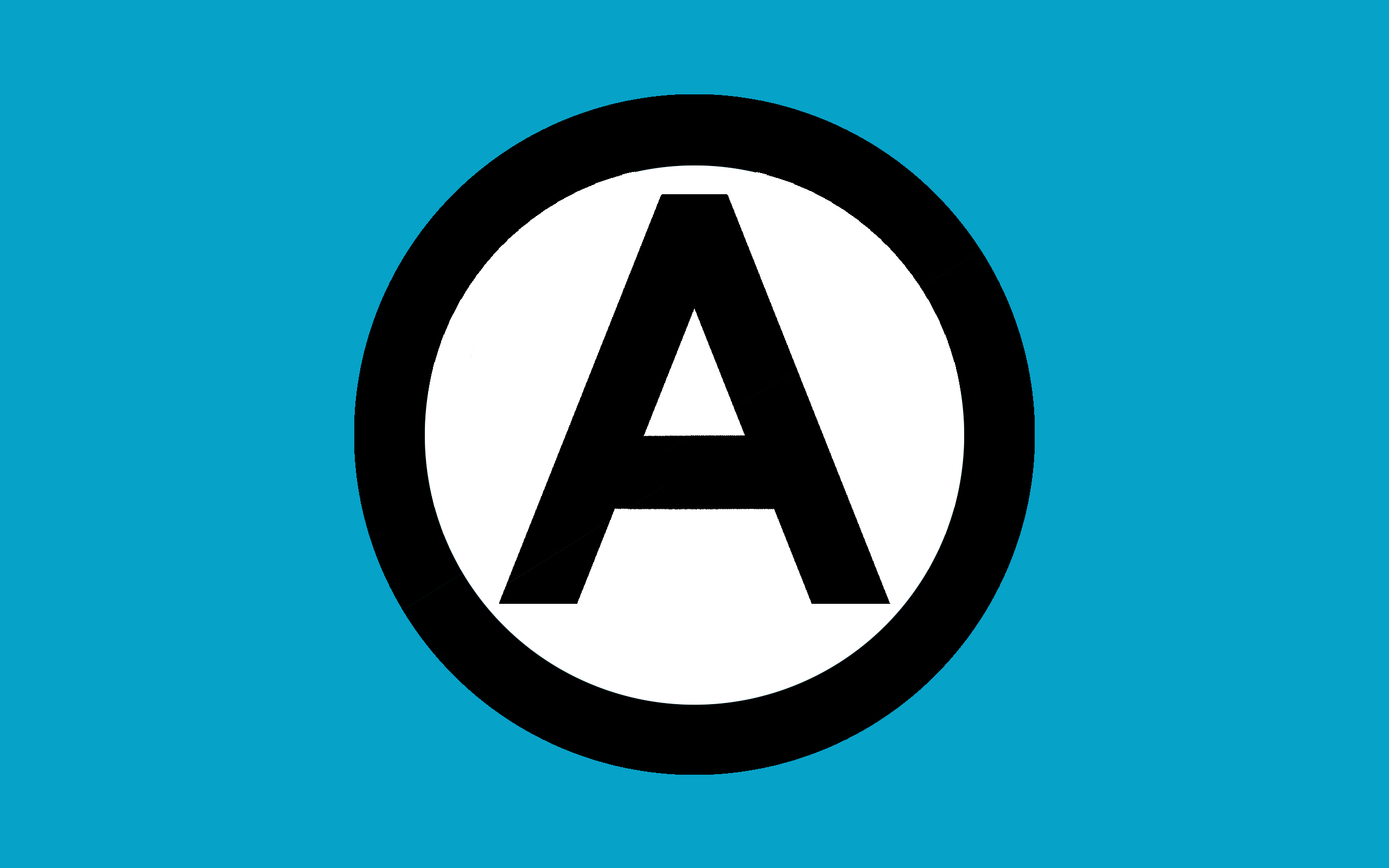 Description: A black and white letter in a circle on a blue background with a black border around it and a white letter in the center.
