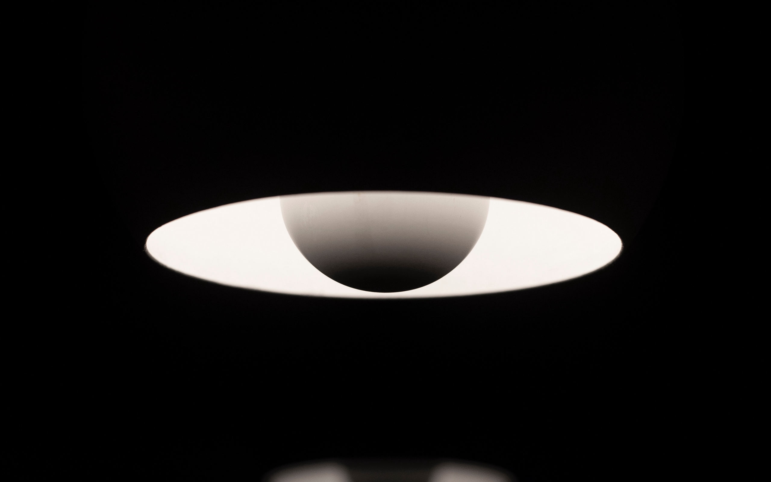 Description: A black and white photo of a light fixture in the dark with a white light on it's side.