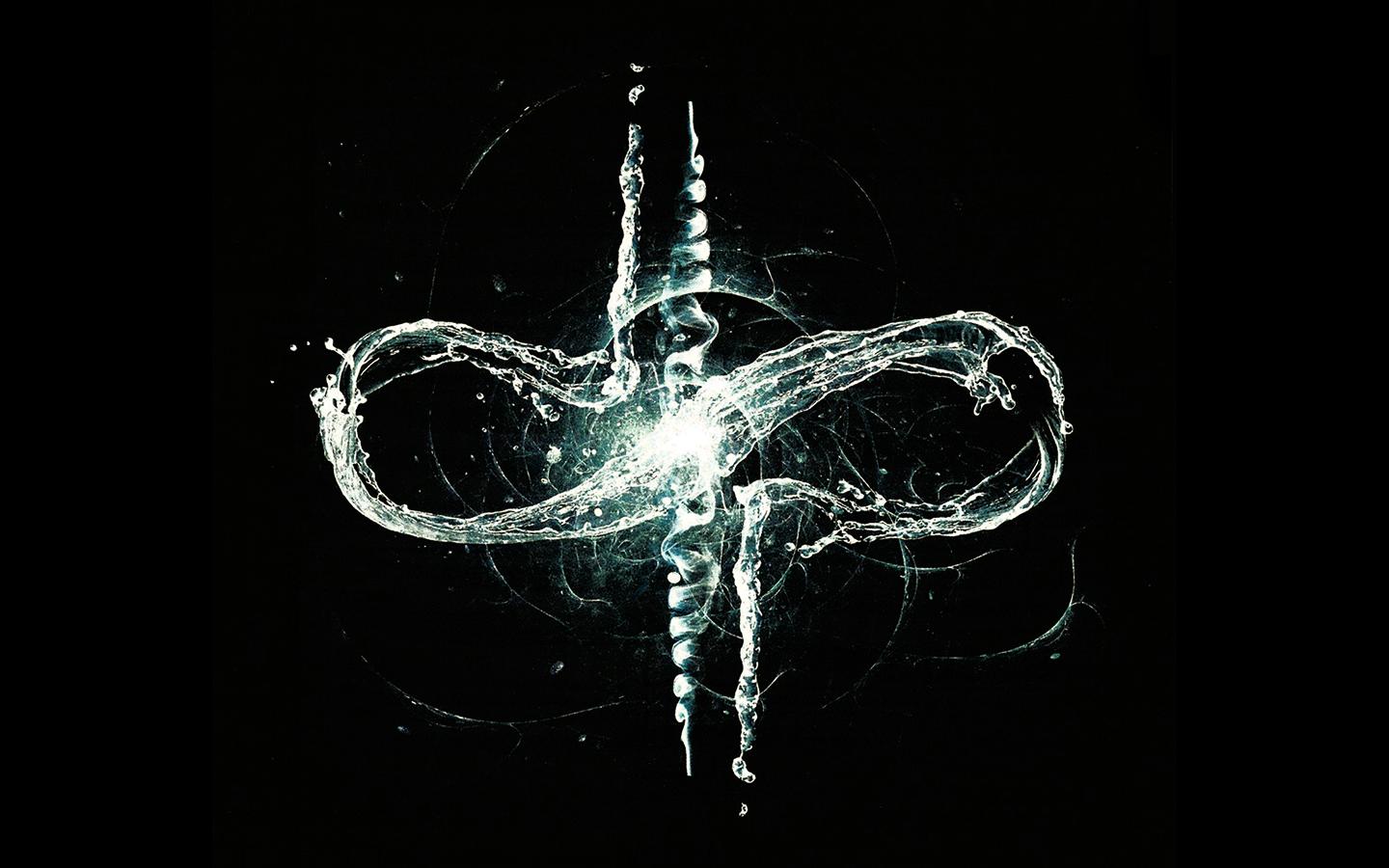 Description: A black and white photo of a lightening object in the dark with a black background and a white lightening object in the middle.