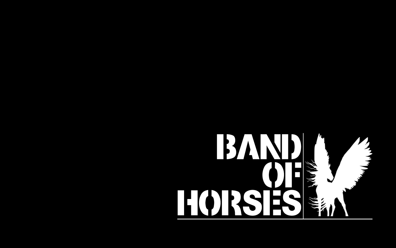 Description: A black and white logo with a bird on it's back and the words band of horses on it.