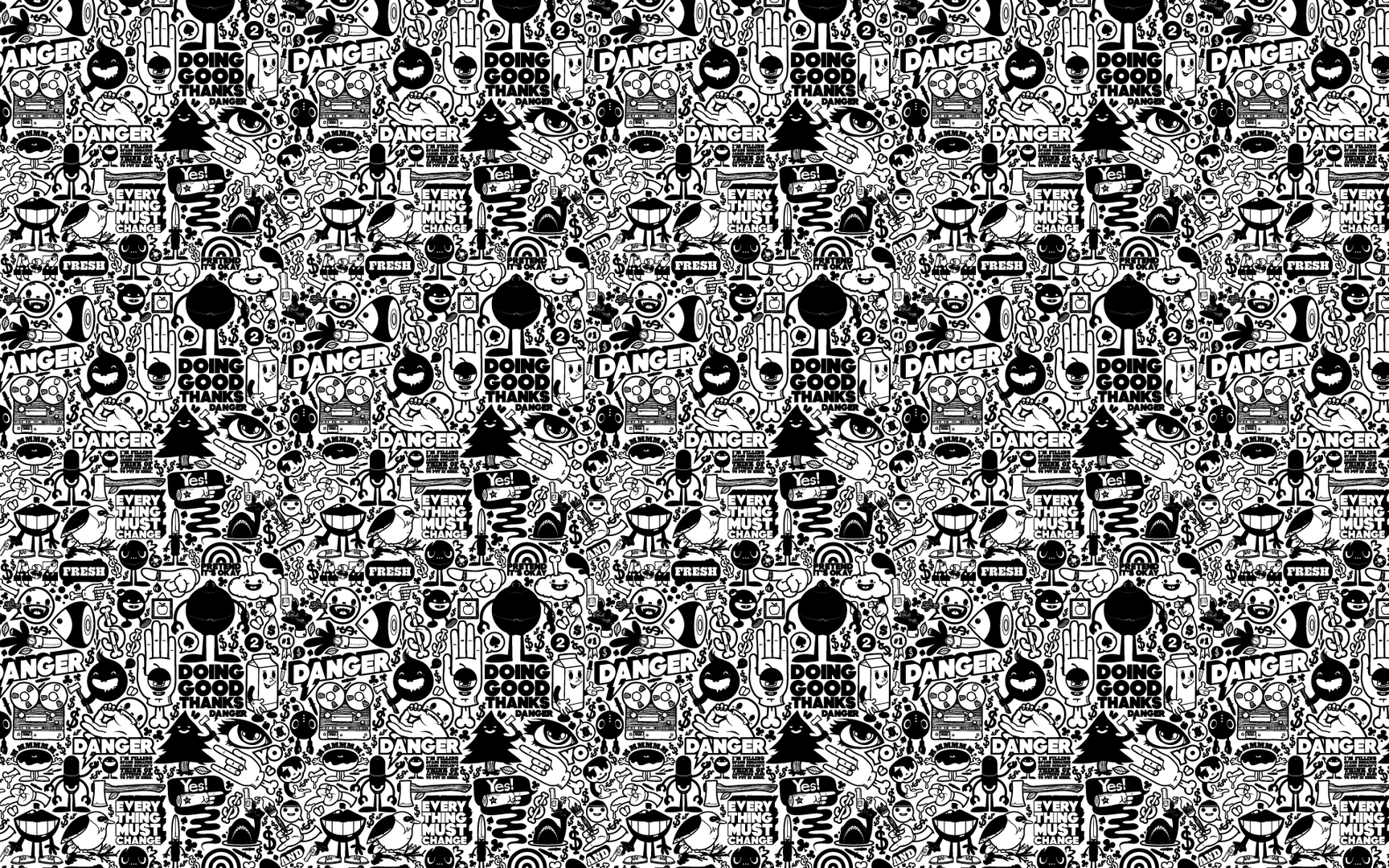 Description: A black and white pattern with a lot of different things on it.