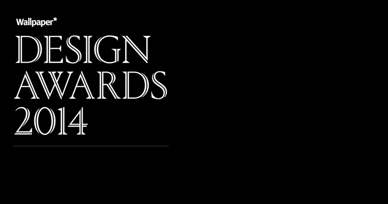 Description: A black and white photo of a person holding a cell phone in their hand and the words design awards 2014.