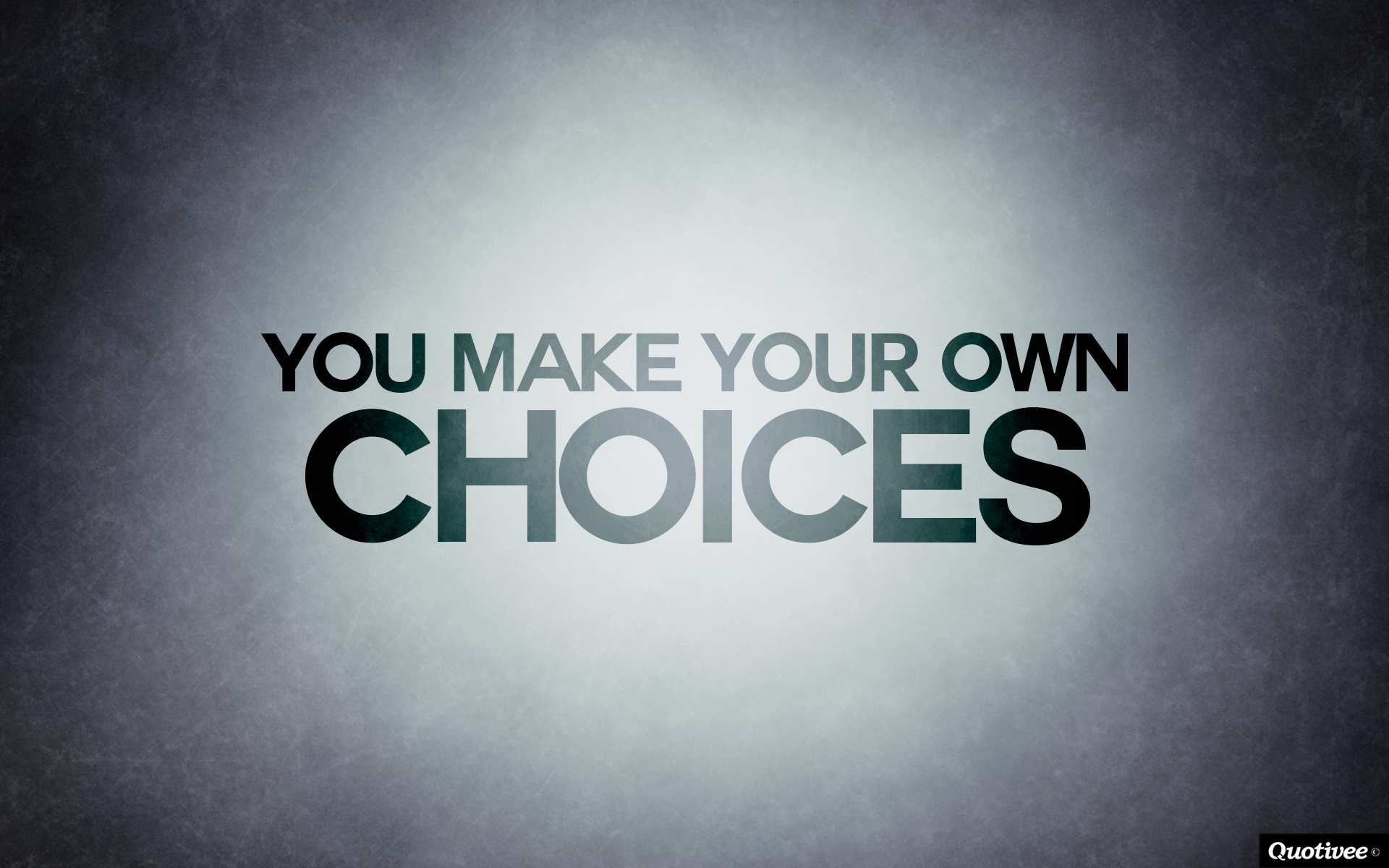 Description: A black and white photo with the words choices on it and a light shining down on the wall behind it.