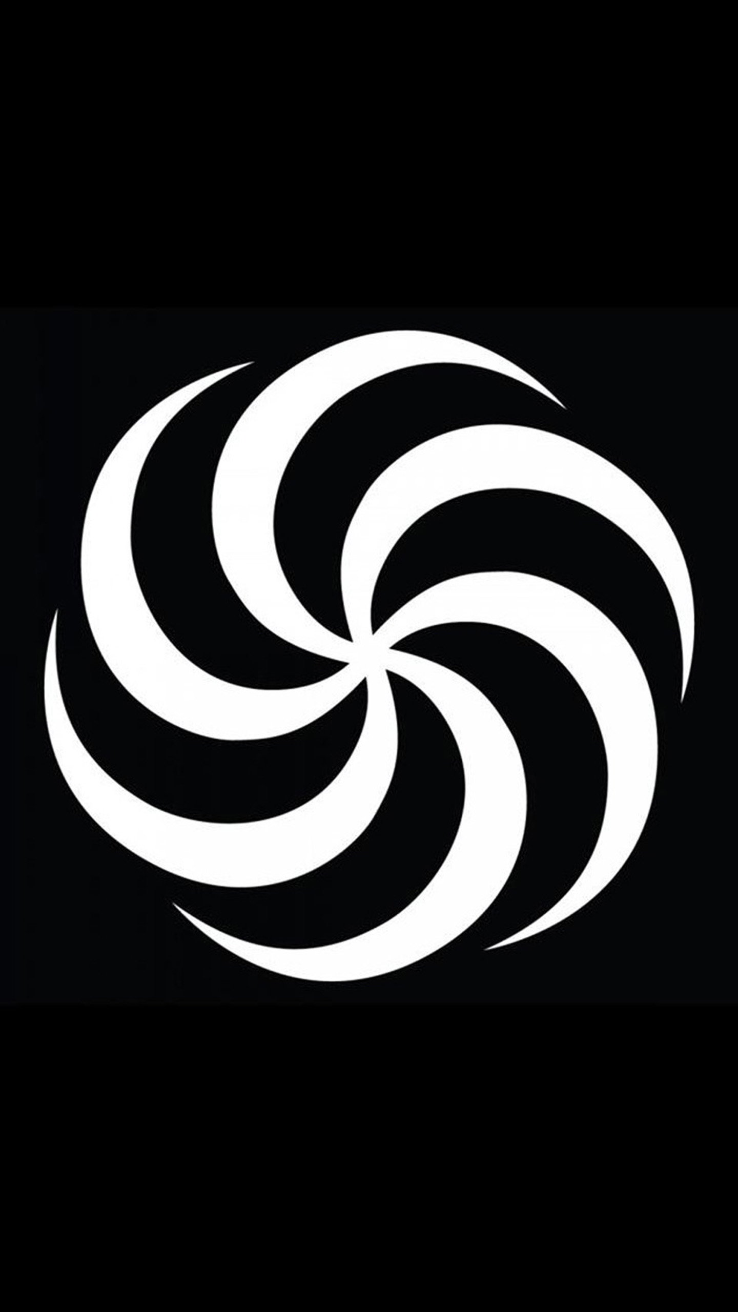 Description: A black and white photo of a circular object with a white stroke on it's side.