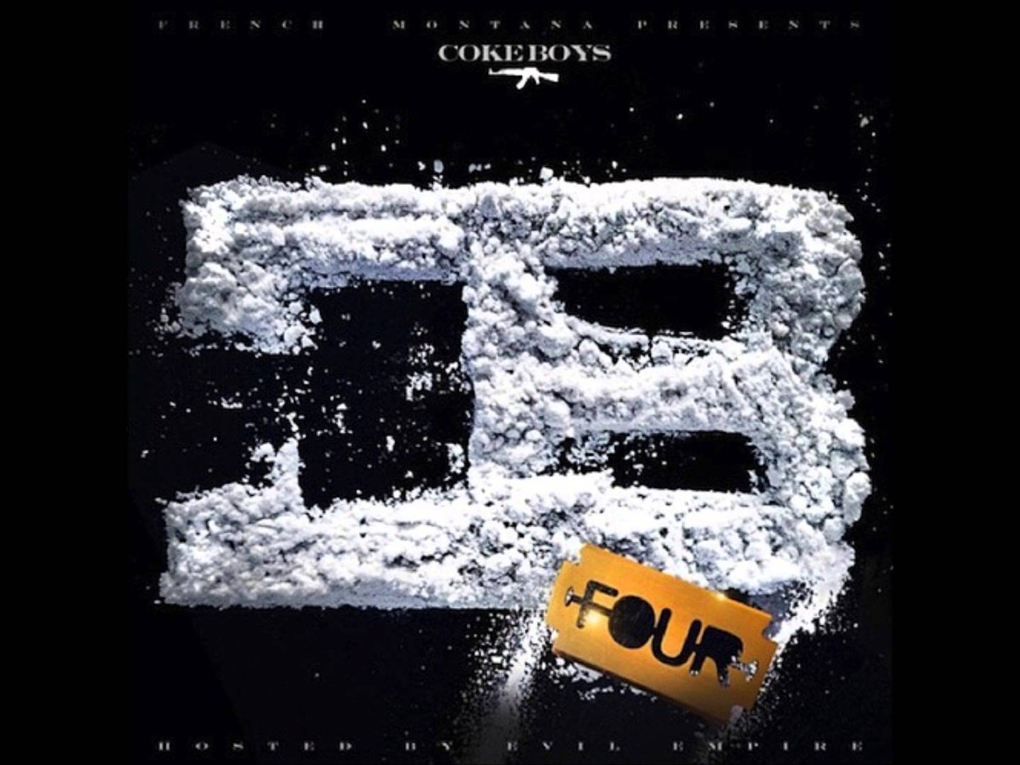 Description: A black and white photo of a font with a yellow sticker on it that says four below it.