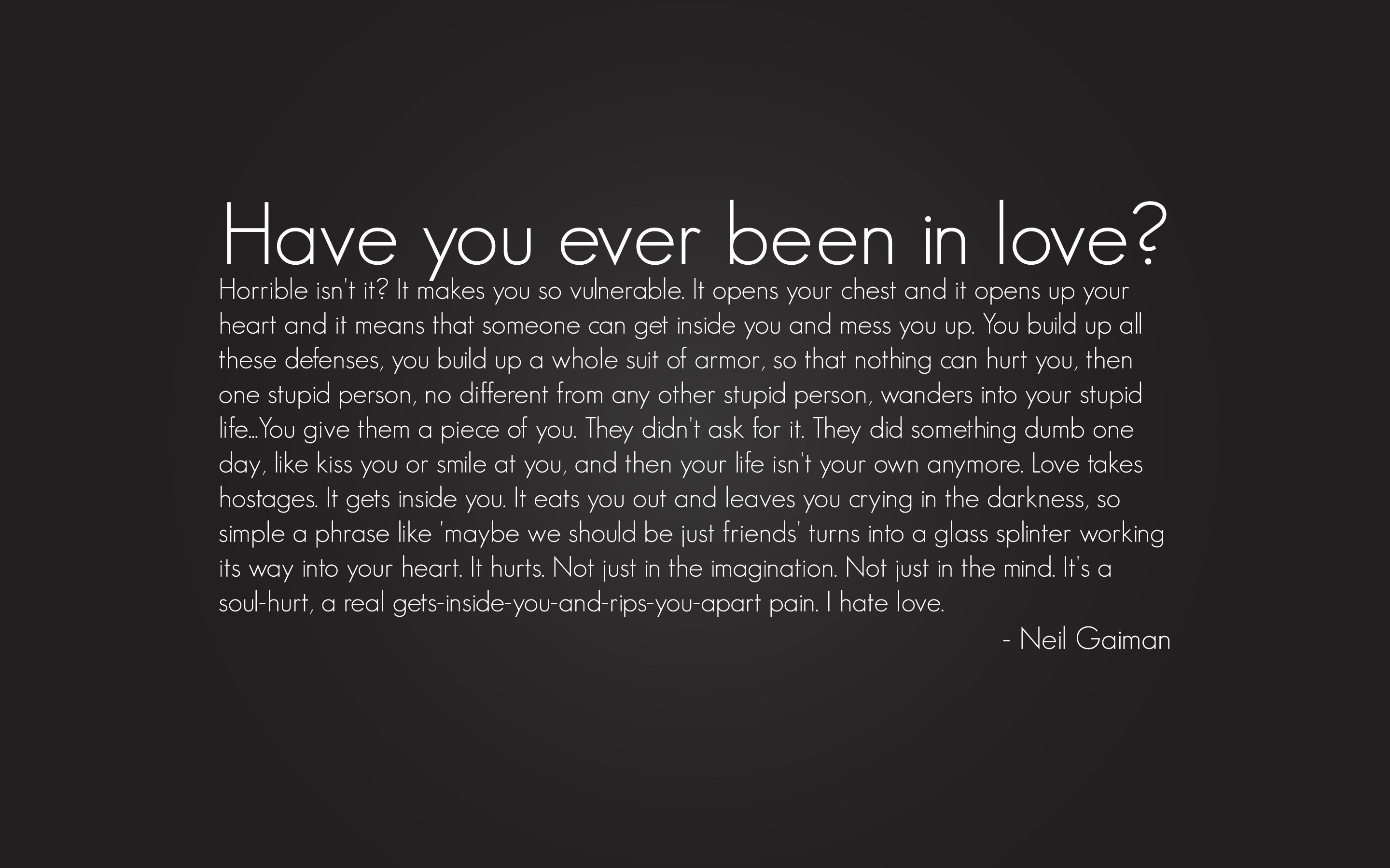 Description: A black and white photo with a quote on it that says have you ever been in love??.