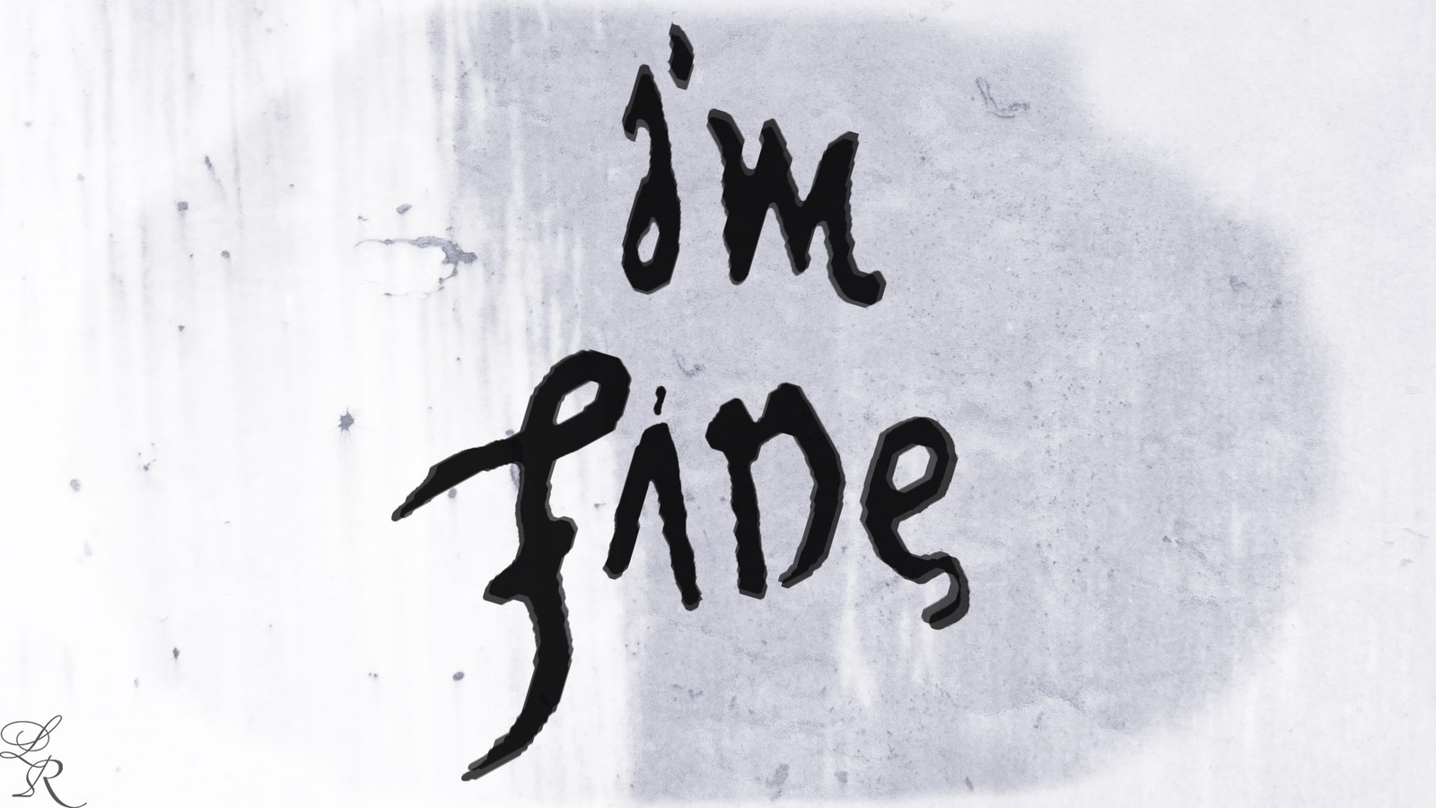 Description: A black and white photo of a wall with the words i'm fine written on it in black ink.