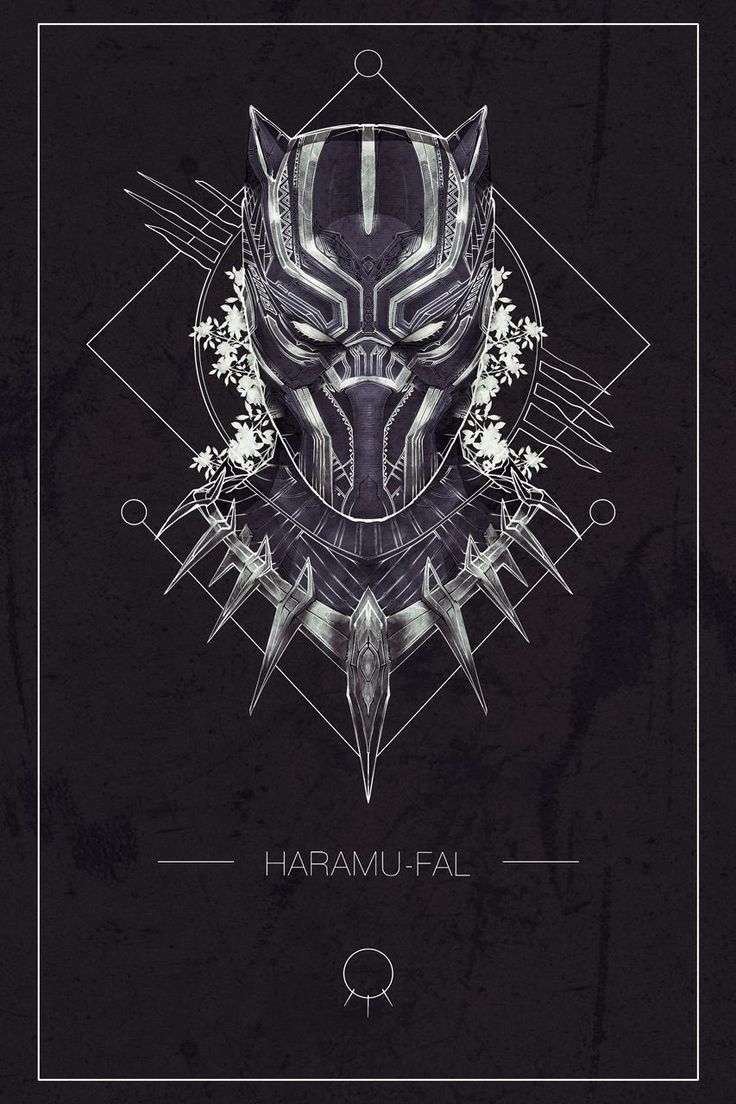 Description: A black and white poster with a mask on it's face and a geometric design on the front.