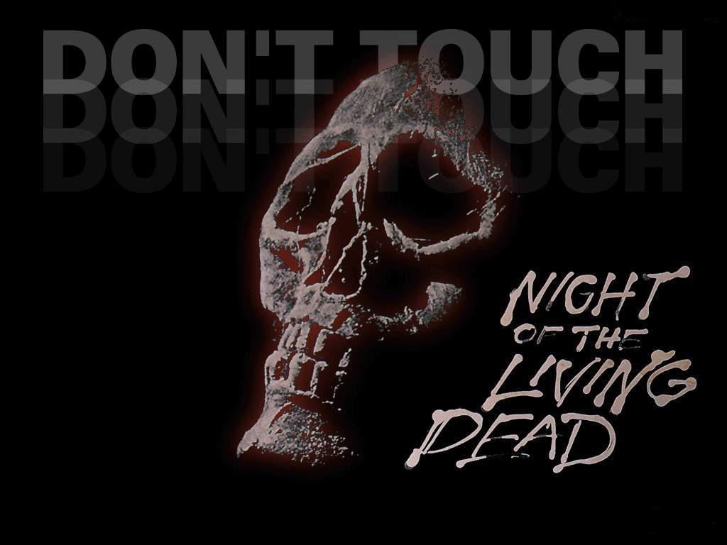 Description: A black and white photo of a skull with the words night of the living dead on it's side.