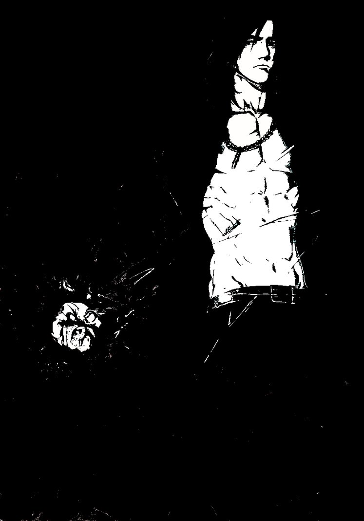 Description: A black and white photo of a person on a snowboard in the dark with a snowboard in the foreground.