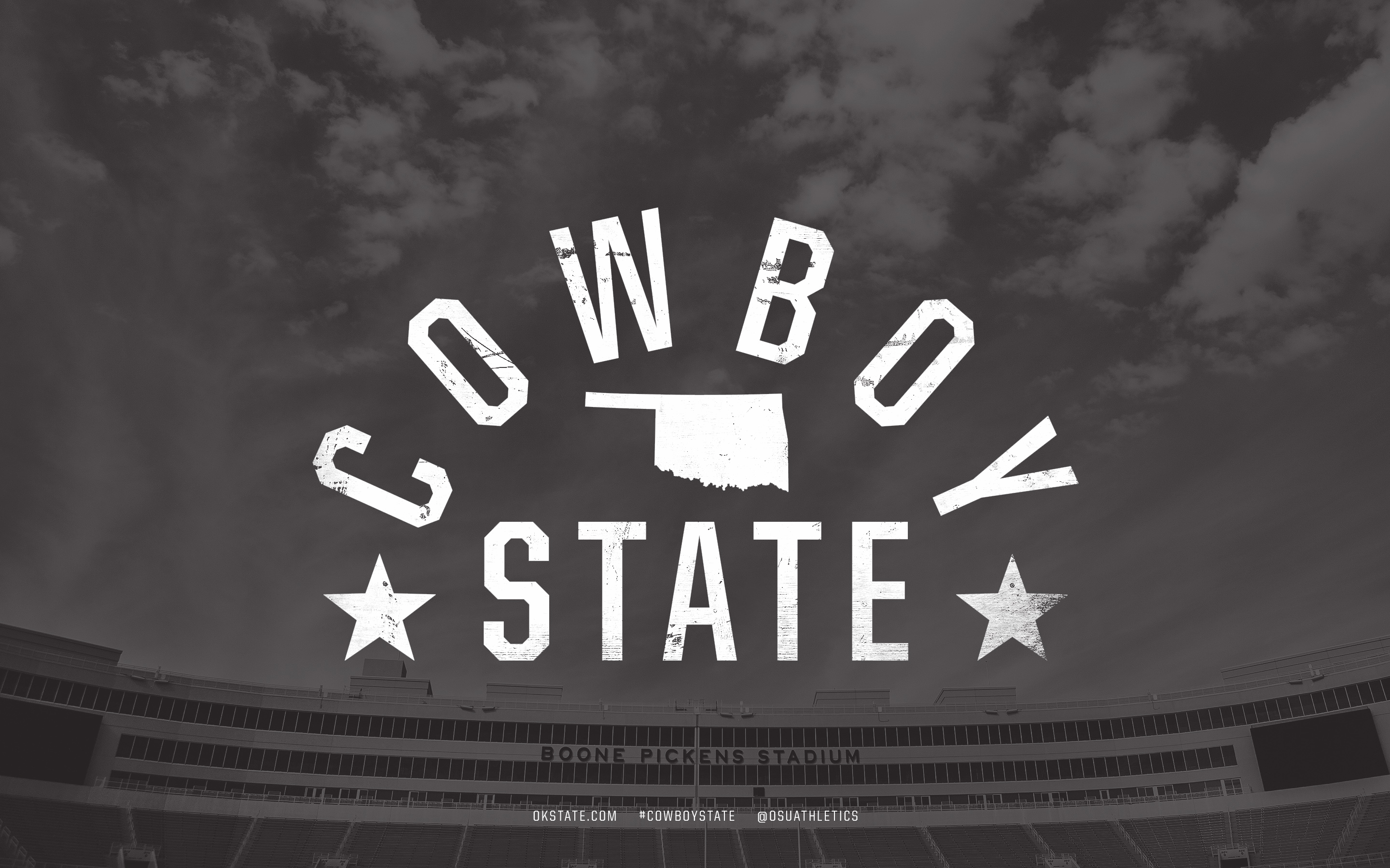 Description: A black and white photo of a stadium with the words cowboys state on it and stars in the sky.