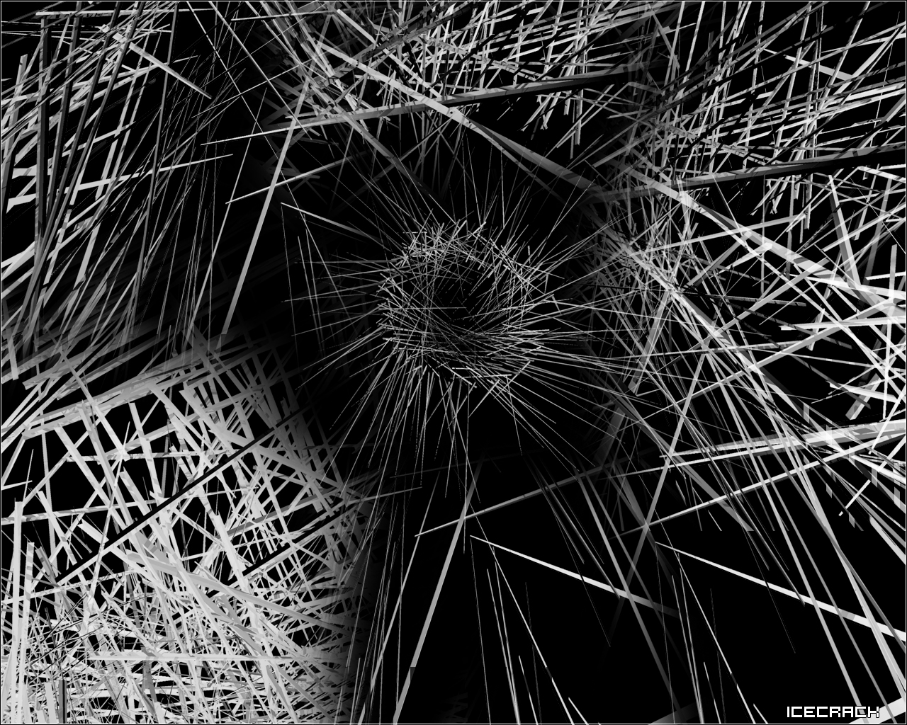 Description: A black and white photo of a bunch of sticks in the air with a black background and a white frame.