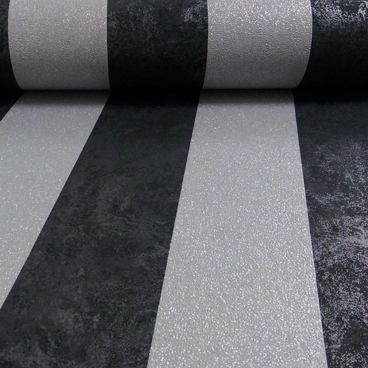 Description: A black and white striped carpet with a black and white stripe on it's side and a black and white stripe on the floor.