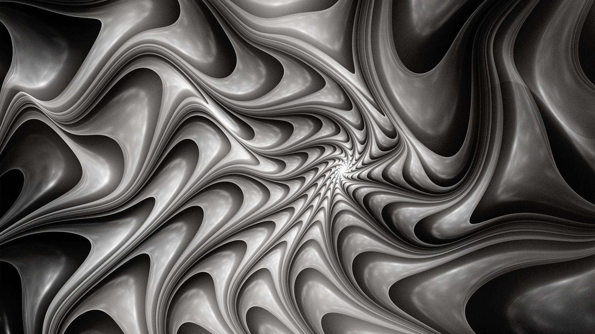 Description: A black and white photo of a swirly pattern with a white center in the middle of the image.