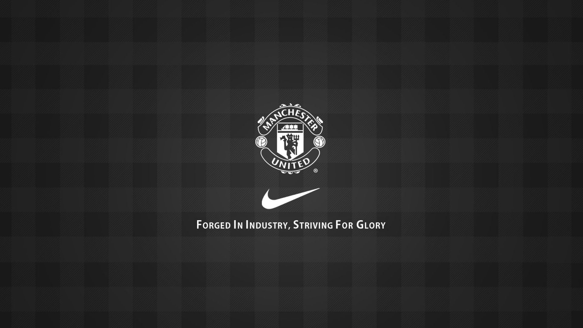 Description: A black and white wallpaper with a manchester united logo on it's side and a nike logo on the bottom.