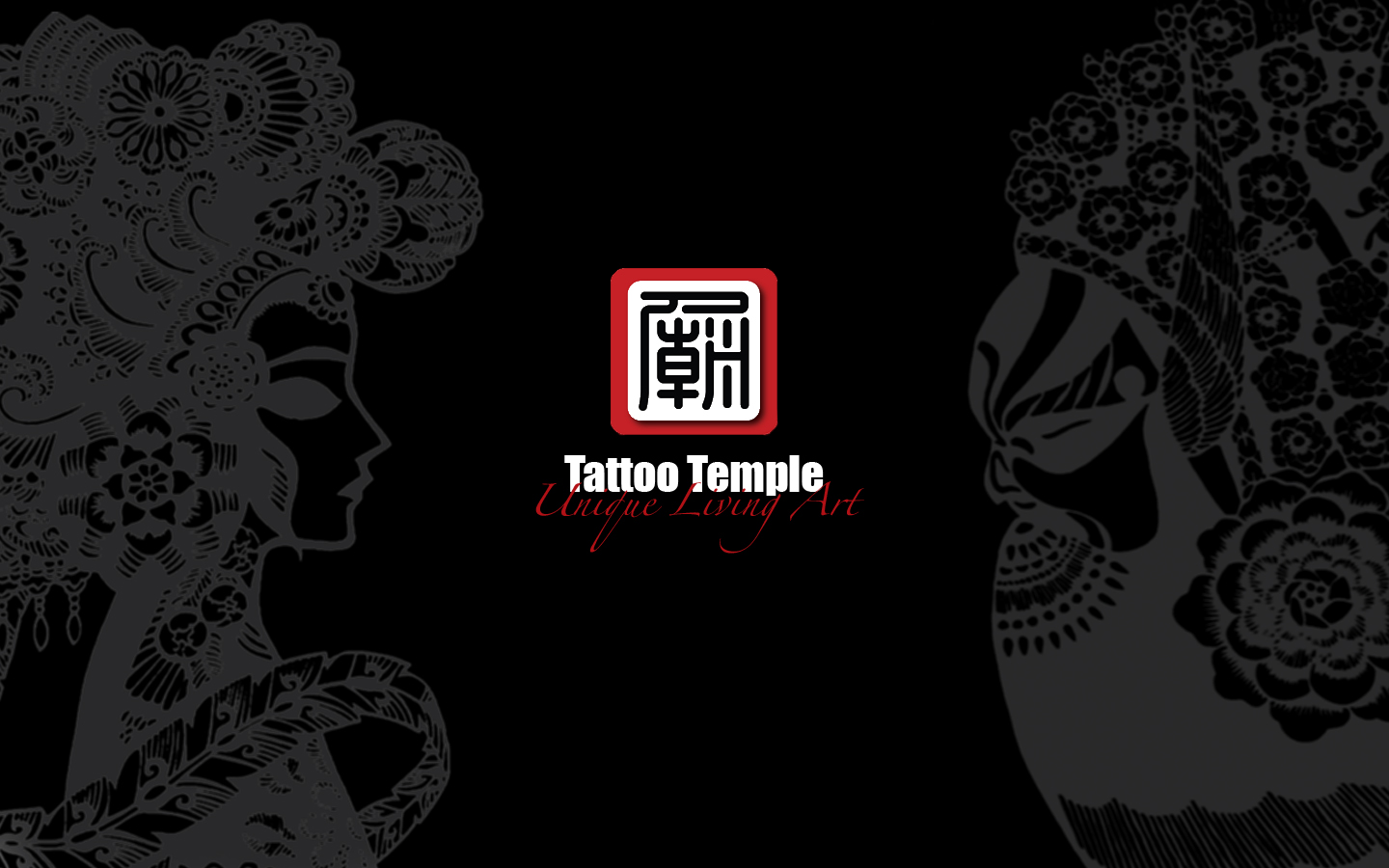 Description: A black and white photo of a woman with flowers in her hair and a tattoo temple logo on the side.