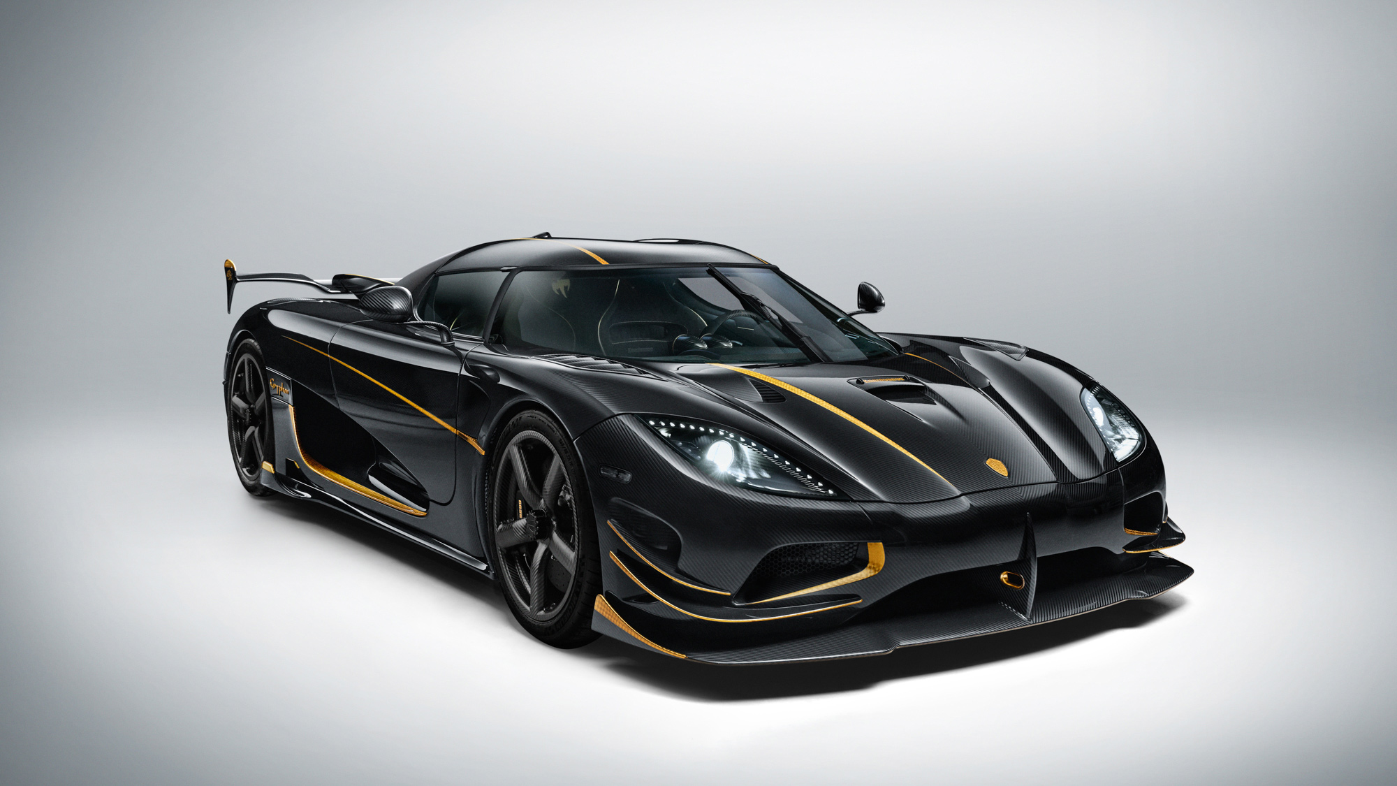 Description: A black and yellow sports car on a white background with a shadow of the car behind it and a white background.