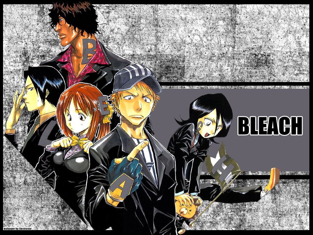 Description: A group of people standing next to each other in front of a sign that says bleach on it.
