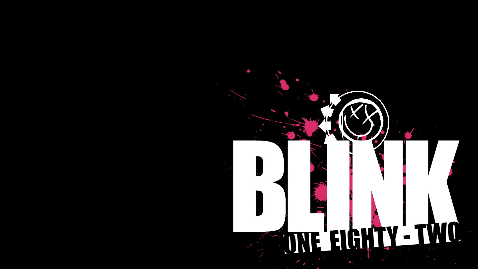Description: A black background with a pink and white logo on it that says blink one eighty two on it's left side.