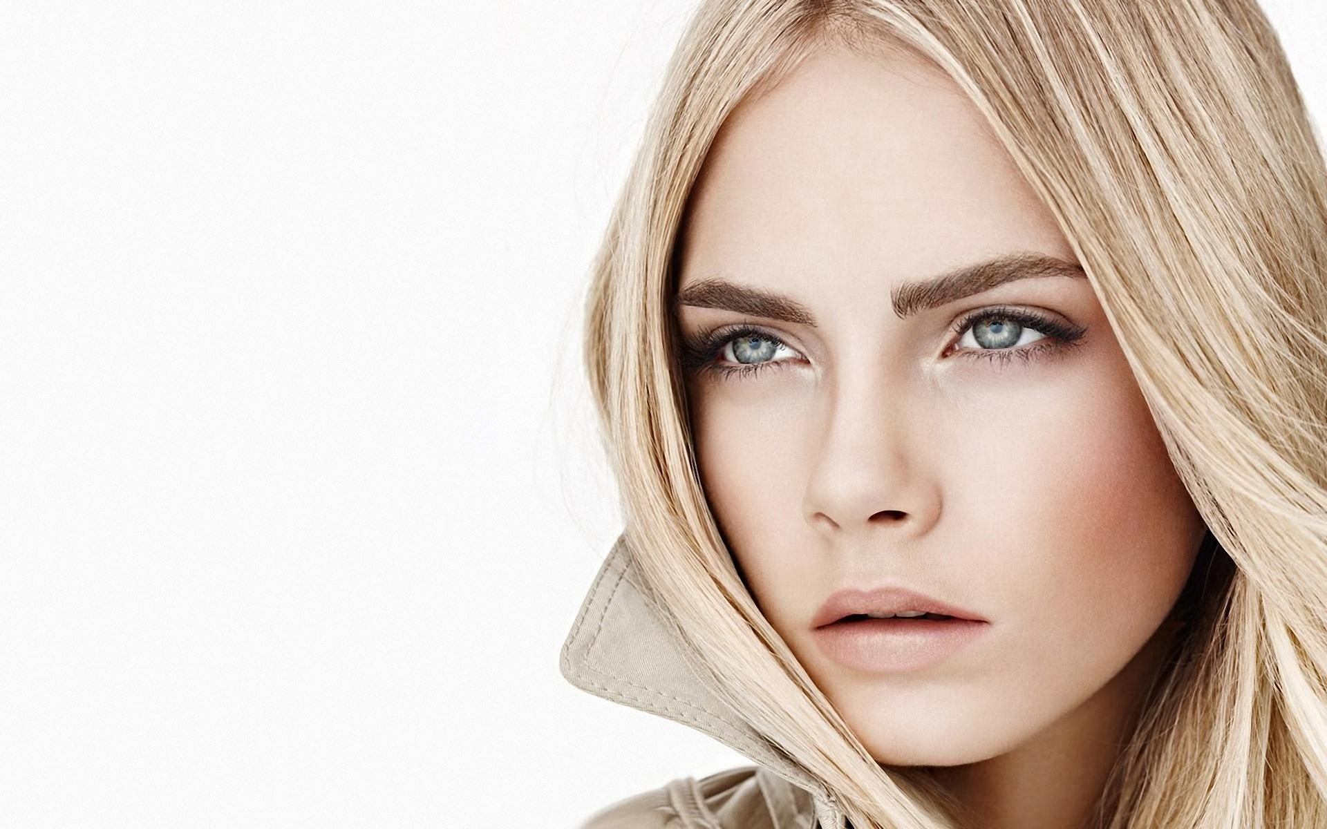 Description: A woman with long blonde hair and blue eyes is looking at the camera with a serious look on her face.