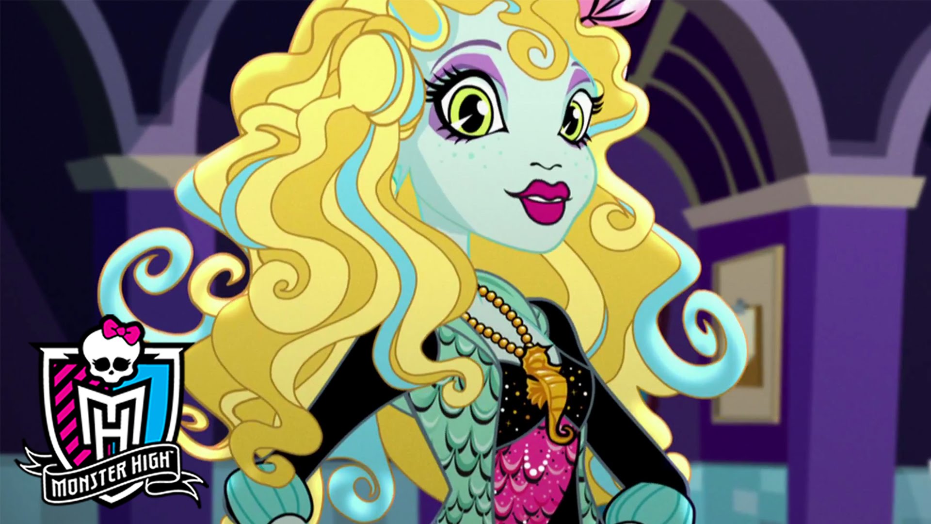 Description: A cartoon of a blonde haired girl with a skull on her chest and a pink dress on her chest.