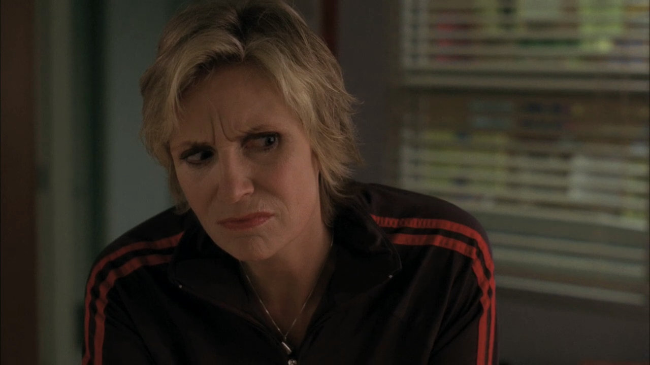 Description: A woman with blonde hair and a black shirt looking at the camera with a serious look on her face.