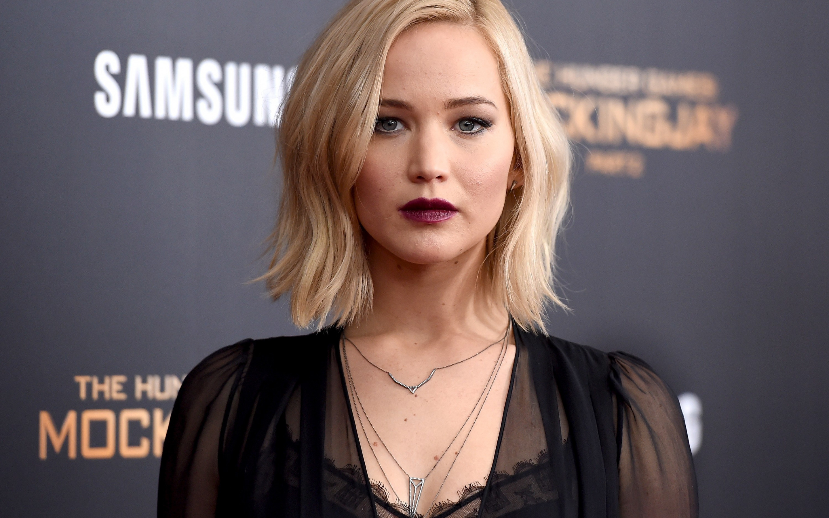 Description: A woman with a black top and a necklace on her neck and a black shirt on her shoulders and a black background.