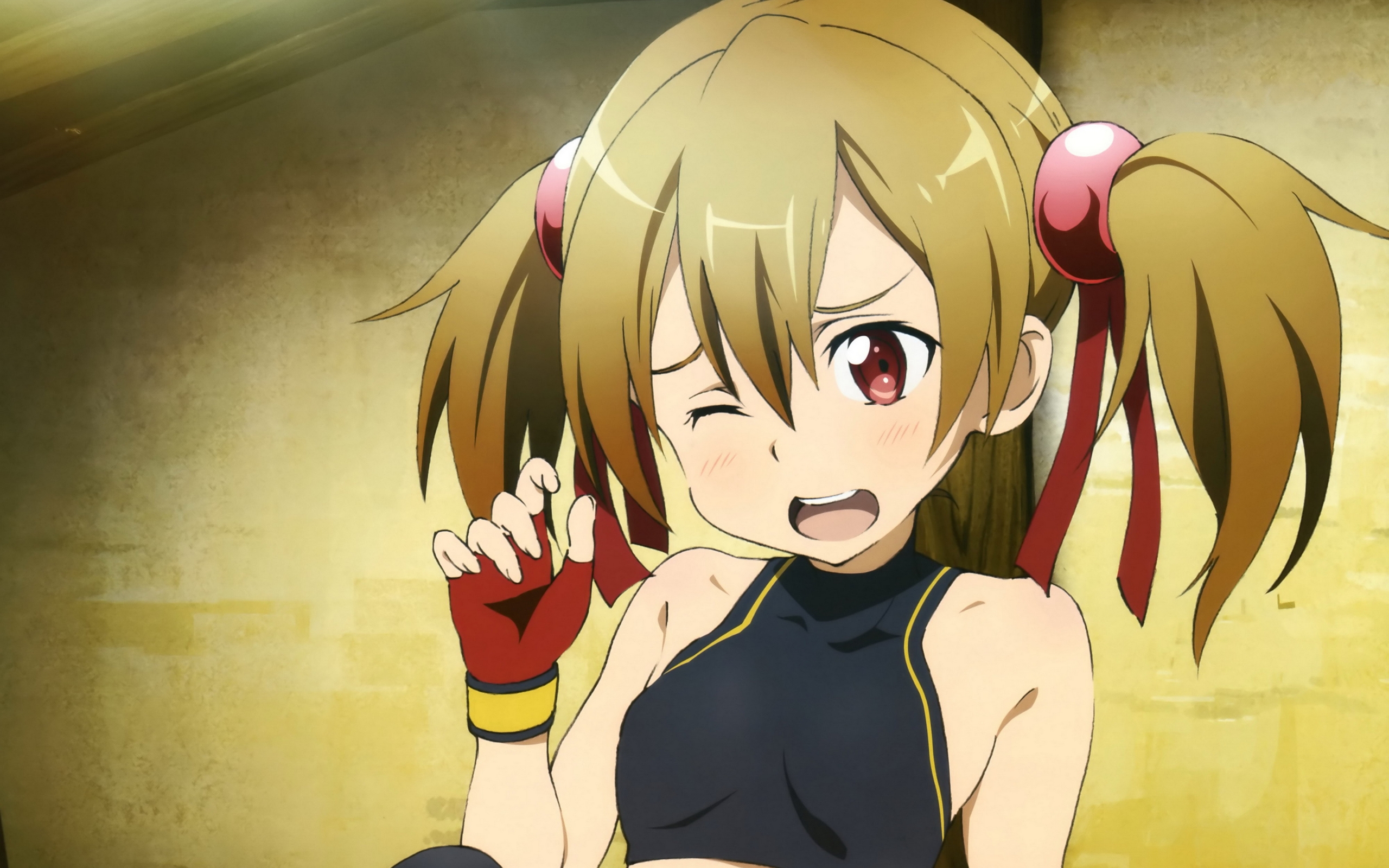 Description: A woman with blonde hair and a black top is holding a red object in her hand and looking at the camera.