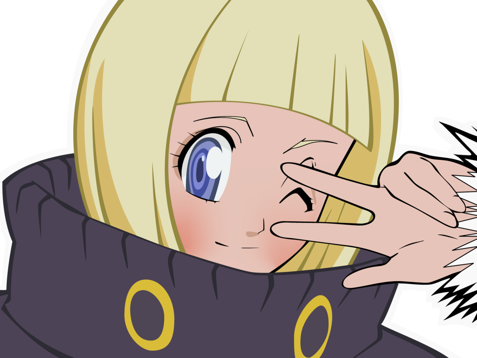 Description: A blonde haired woman with blue eyes and a scarf around her neck.