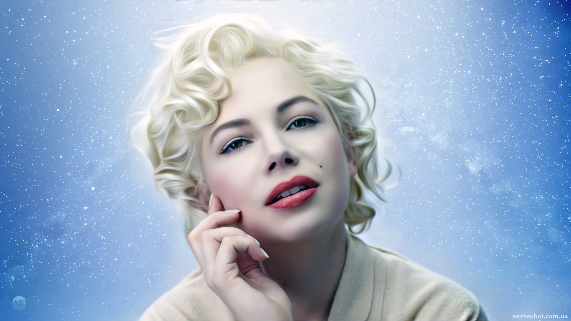 Description: A woman with blonde hair and a blue background with stars and a blue sky with stars and a blue background with a blue sky with stars and a white background with a.