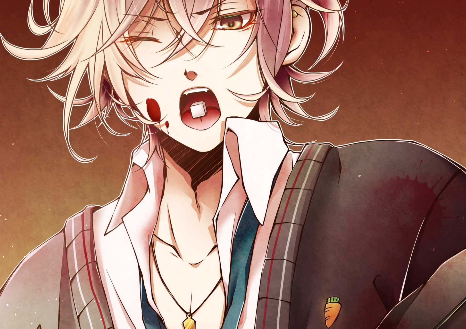 Description: A woman with blonde hair and a white shirt with a surprised look on her face and chest.