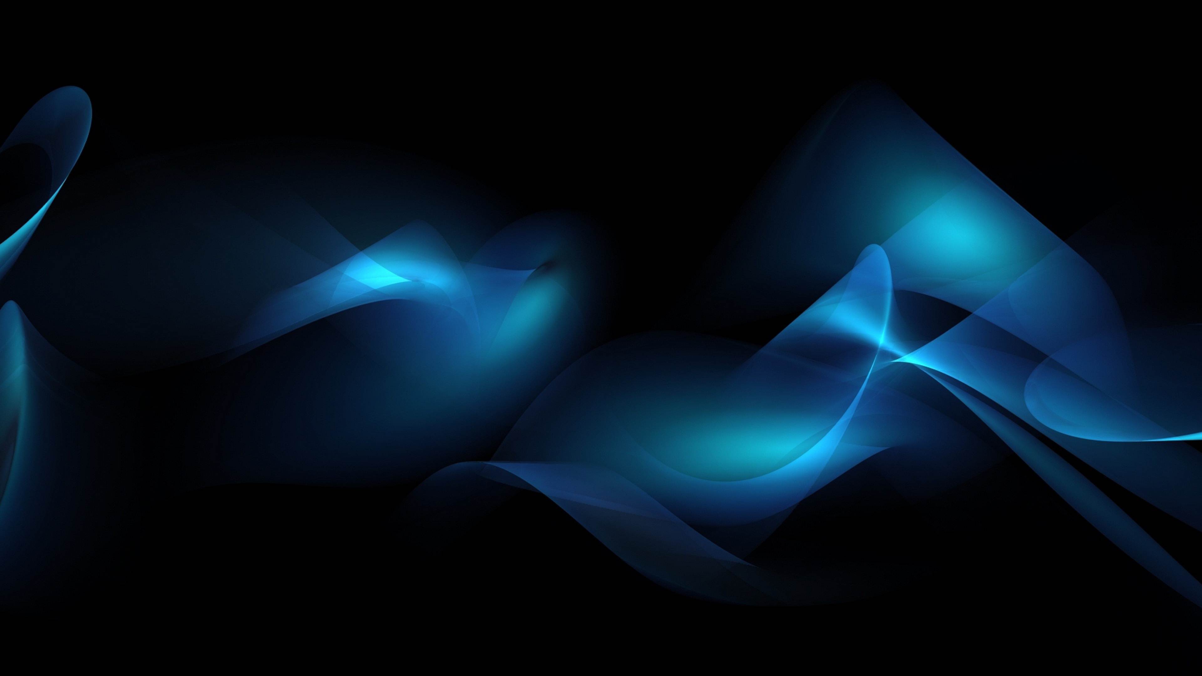 Description: A blue abstract background with wavy lines and curves on a black background with a black background and a blue light.