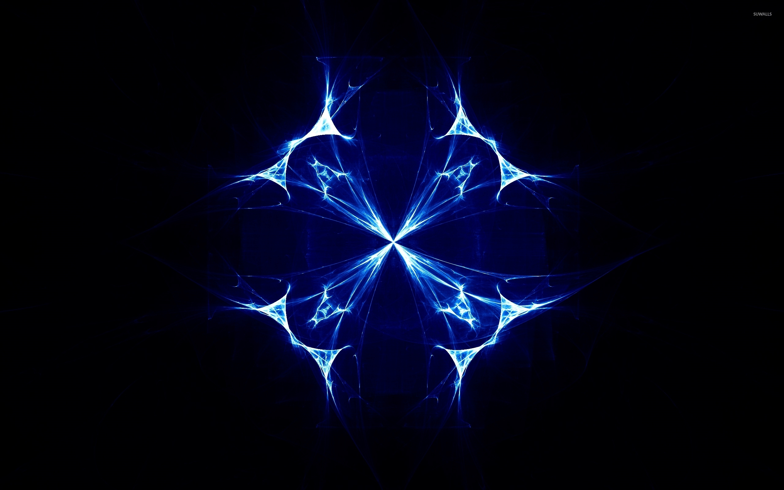 Description: A blue abstract design with a black background and a black background with a blue flower in the center of the image.
