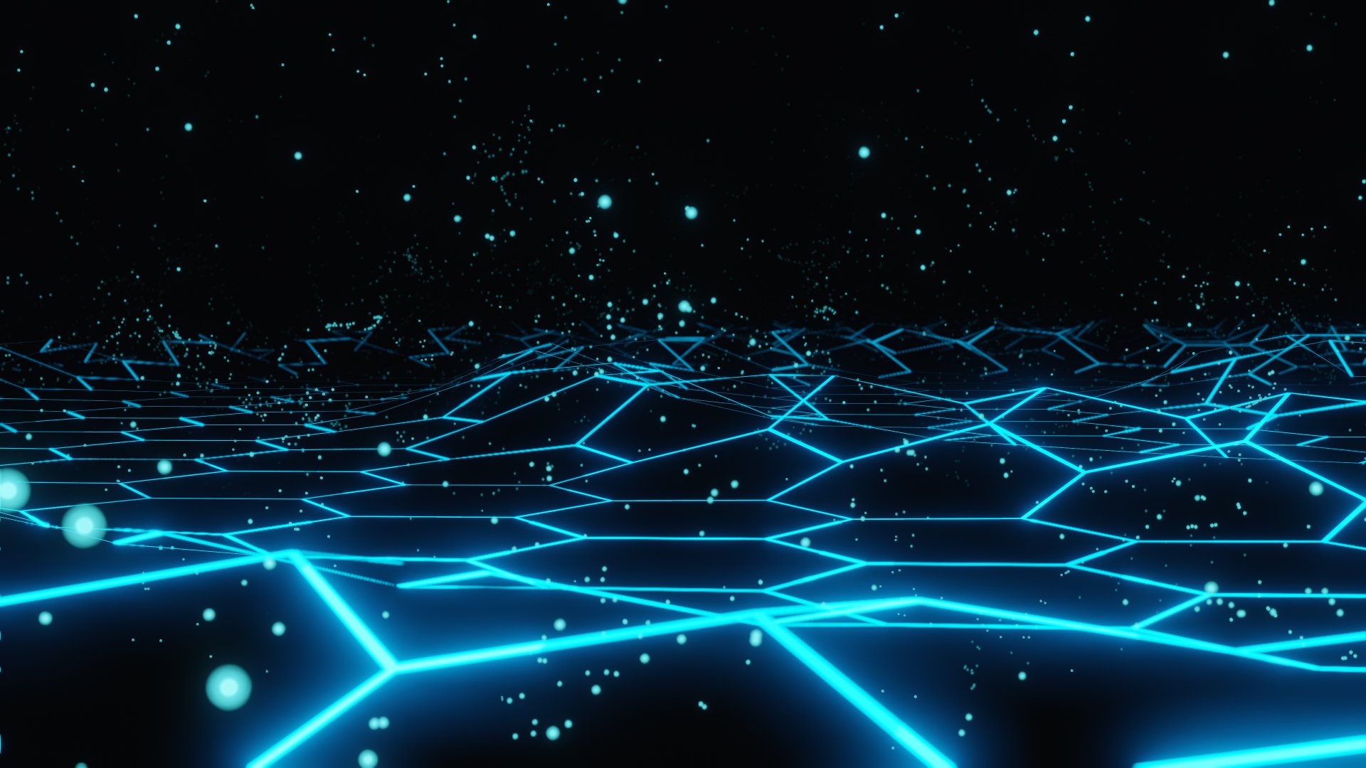 Description: A blue abstract background with lines and dots in the middle of it and stars in the background and a black background.