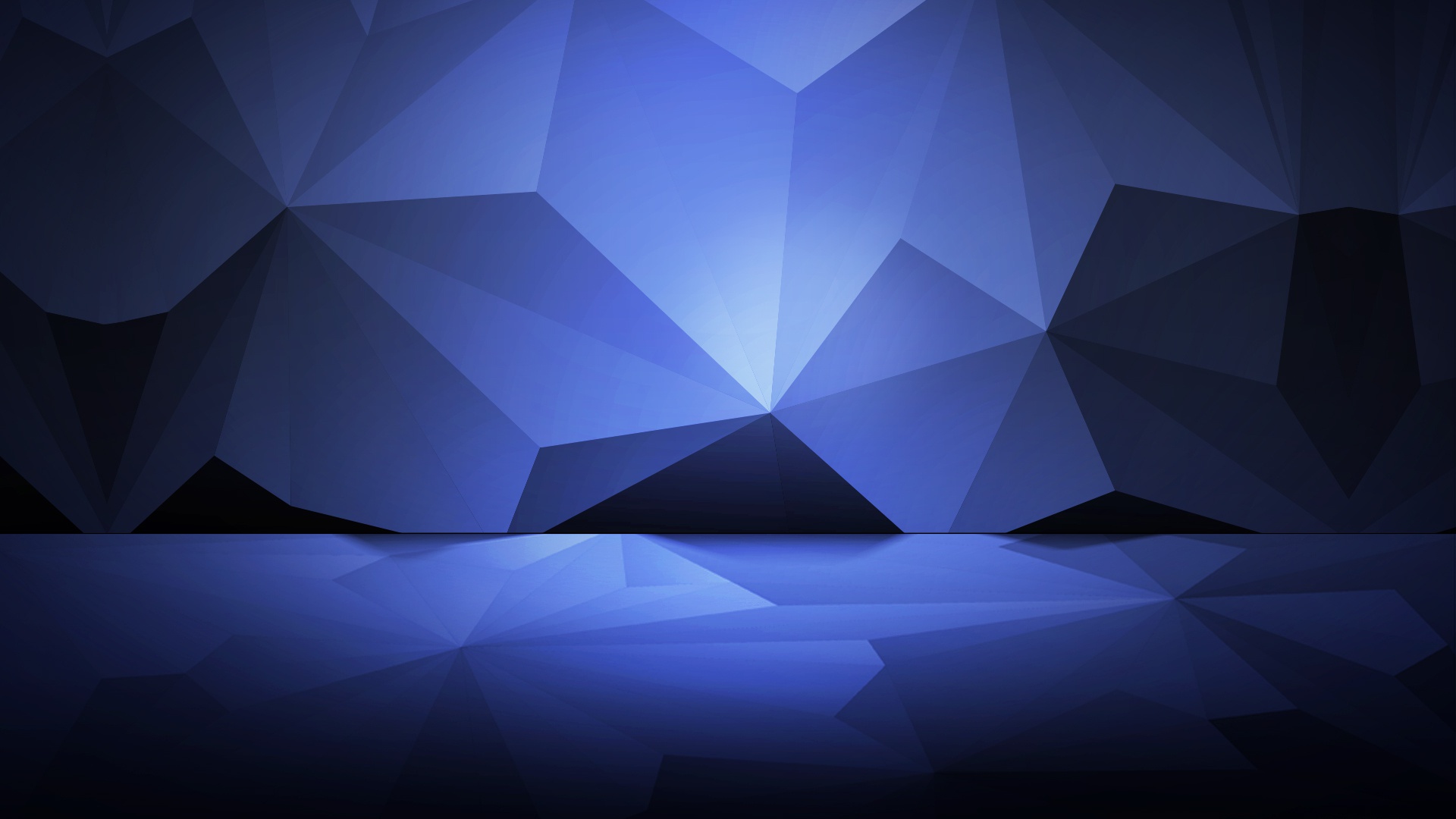Description: A blue abstract background with a low poly design and a reflection of the light on the water below it.