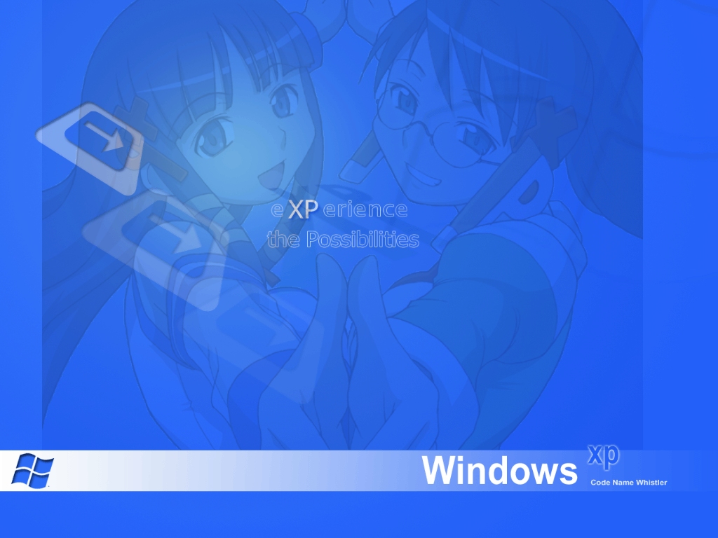 Description: A blue background with two anime characters and a window xp logo on it.