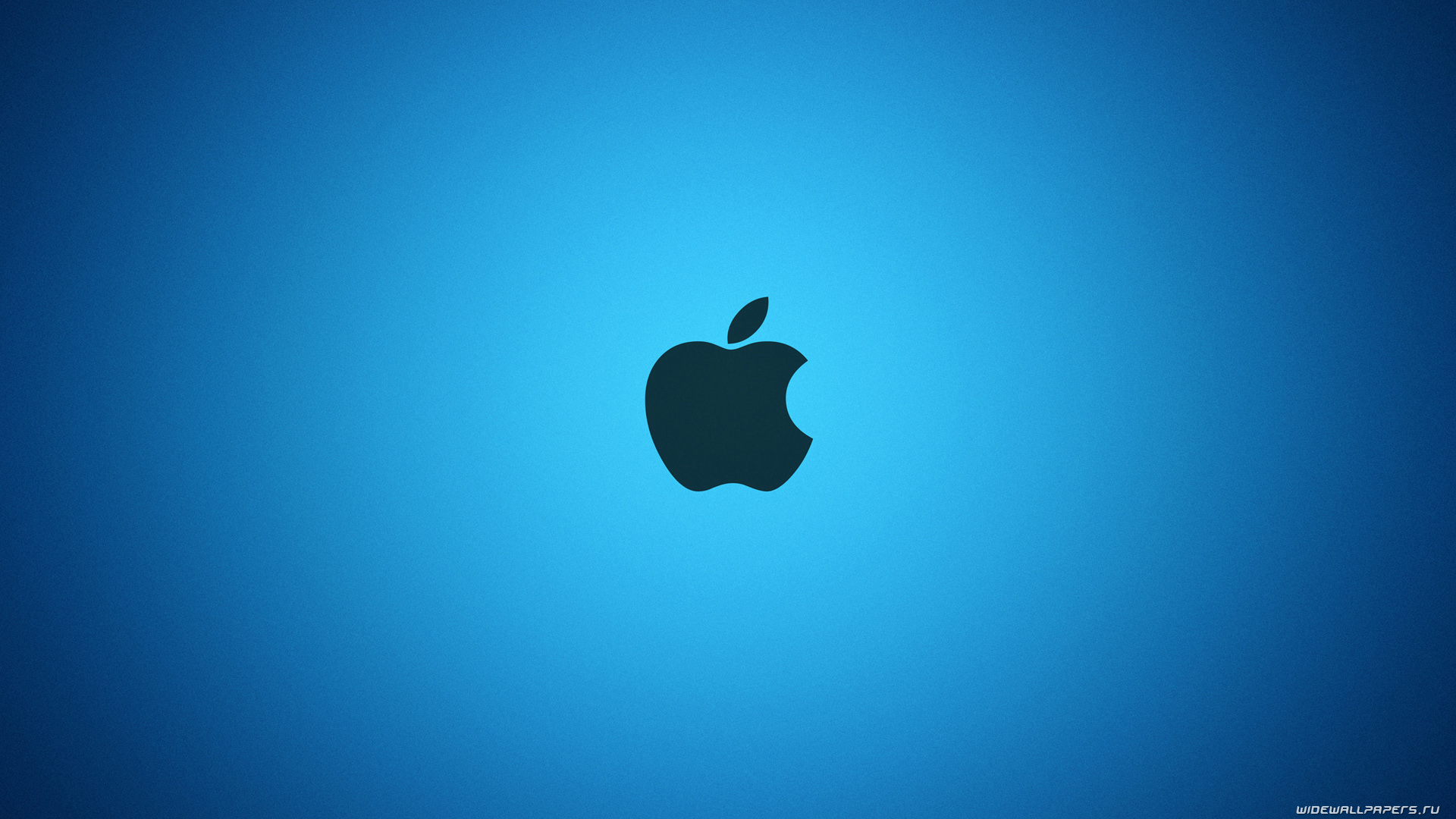 Description: A blue apple logo on a blue background with a shadow of an apple on the bottom of the apple logo.