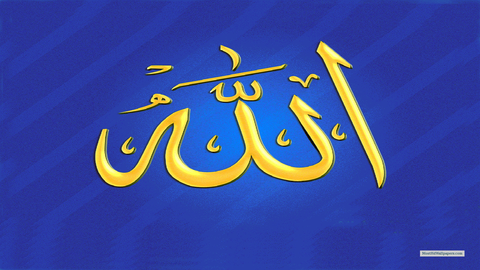 Description: A blue background with a gold calligraphy in the middle of it.