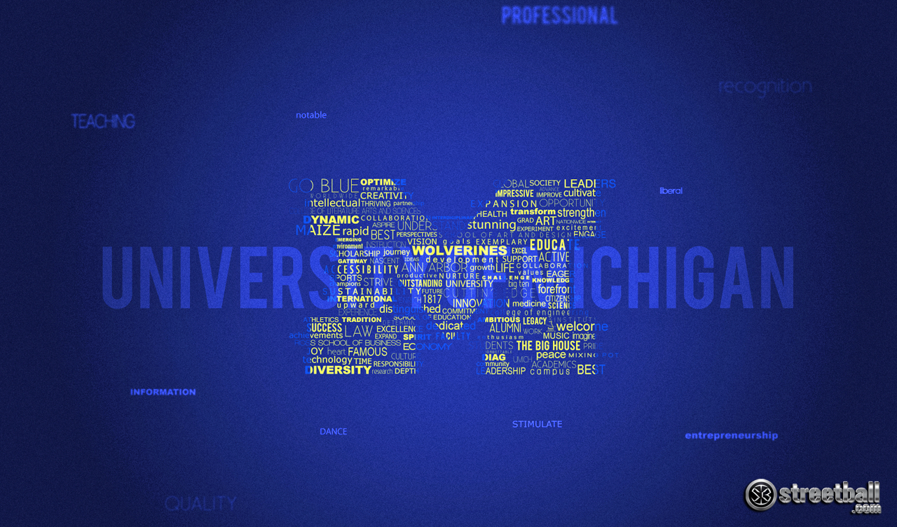 Description: A blue background with the word michigan in a large letter shape with the words university in the center of the image.