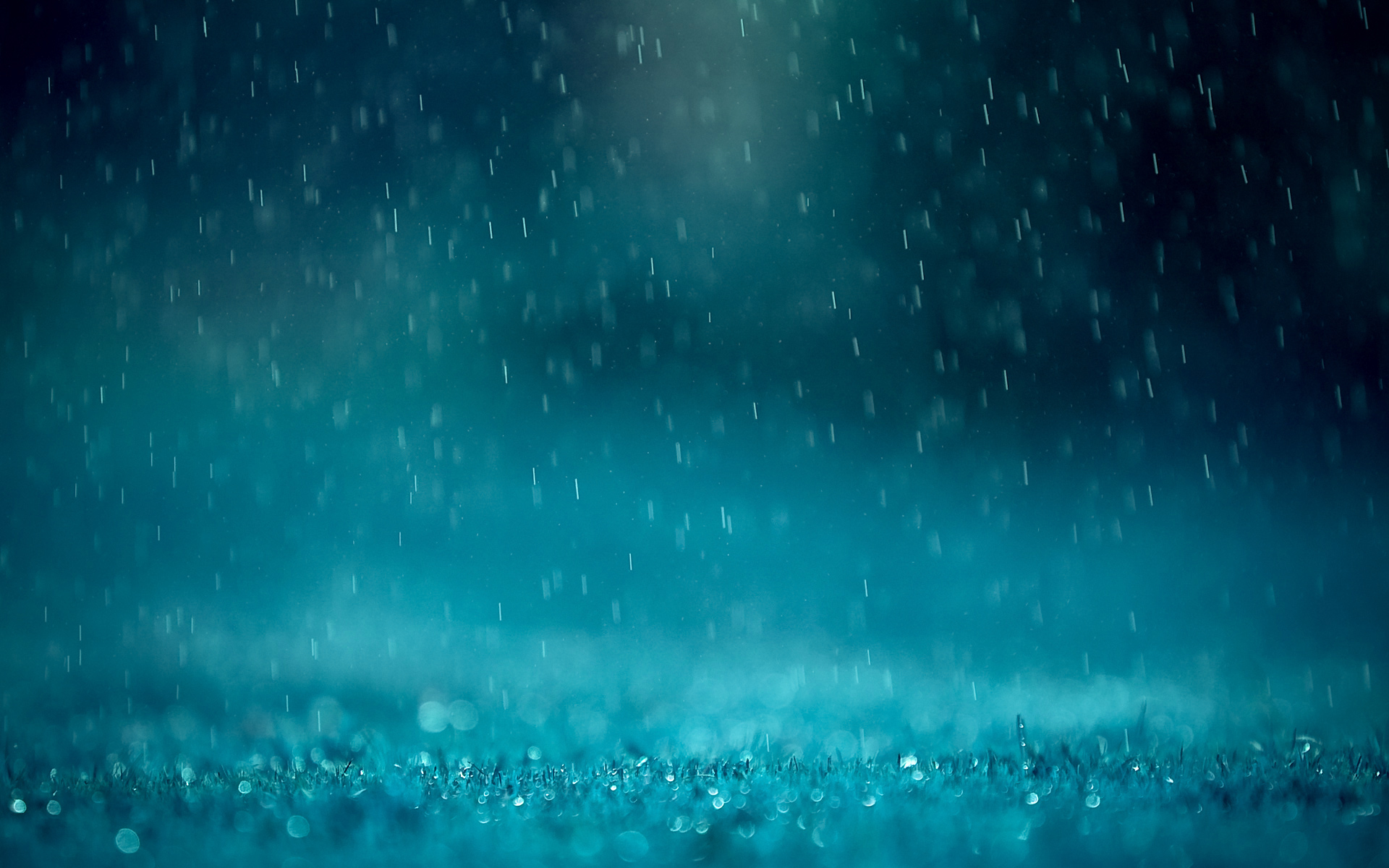 Description: A blue background with rain drops falling on it and a dark sky in the background with a light beam.
