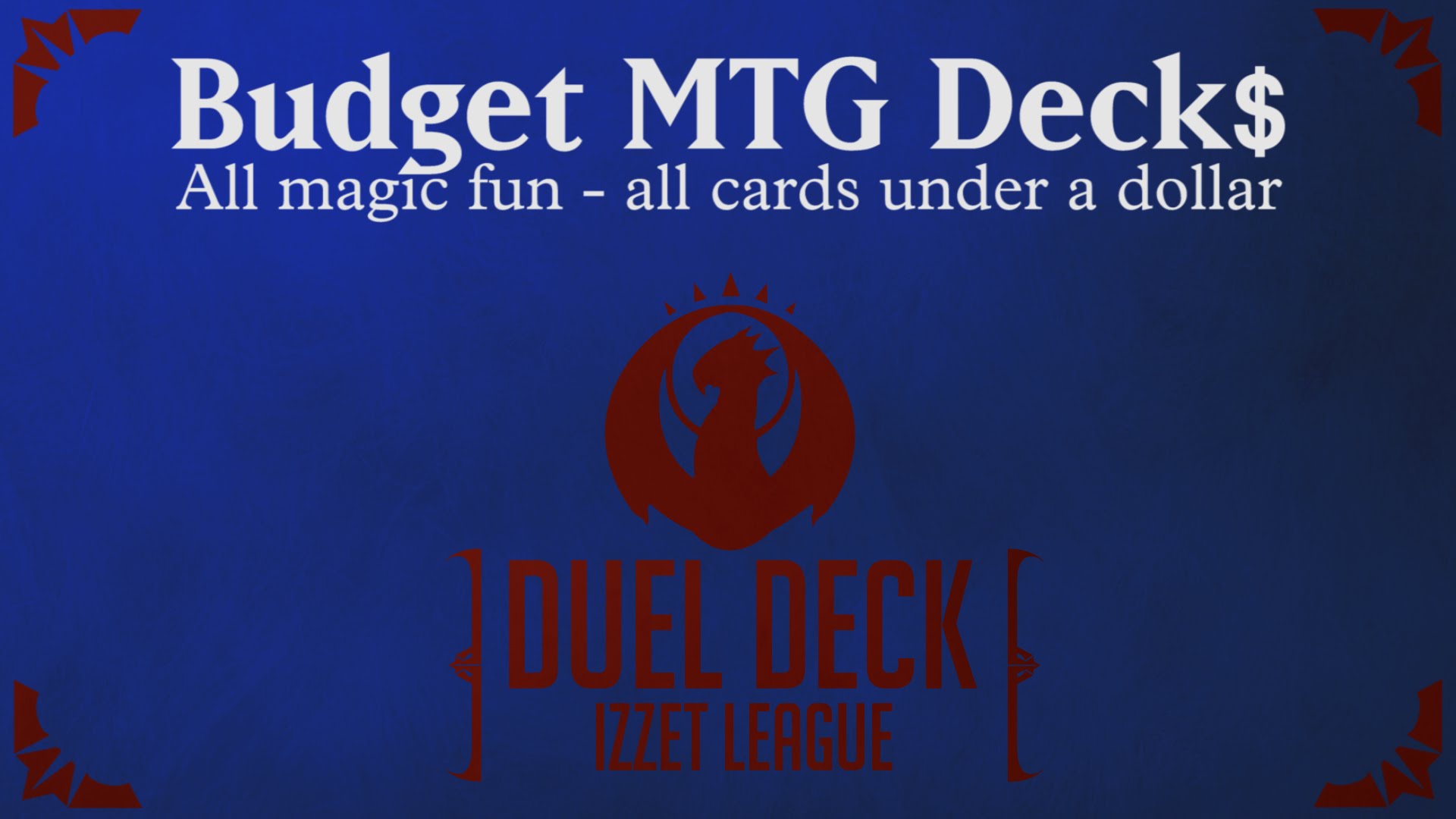 Description: A blue background with a red and white logo and a red and white logo on it that says budget mtg decks.