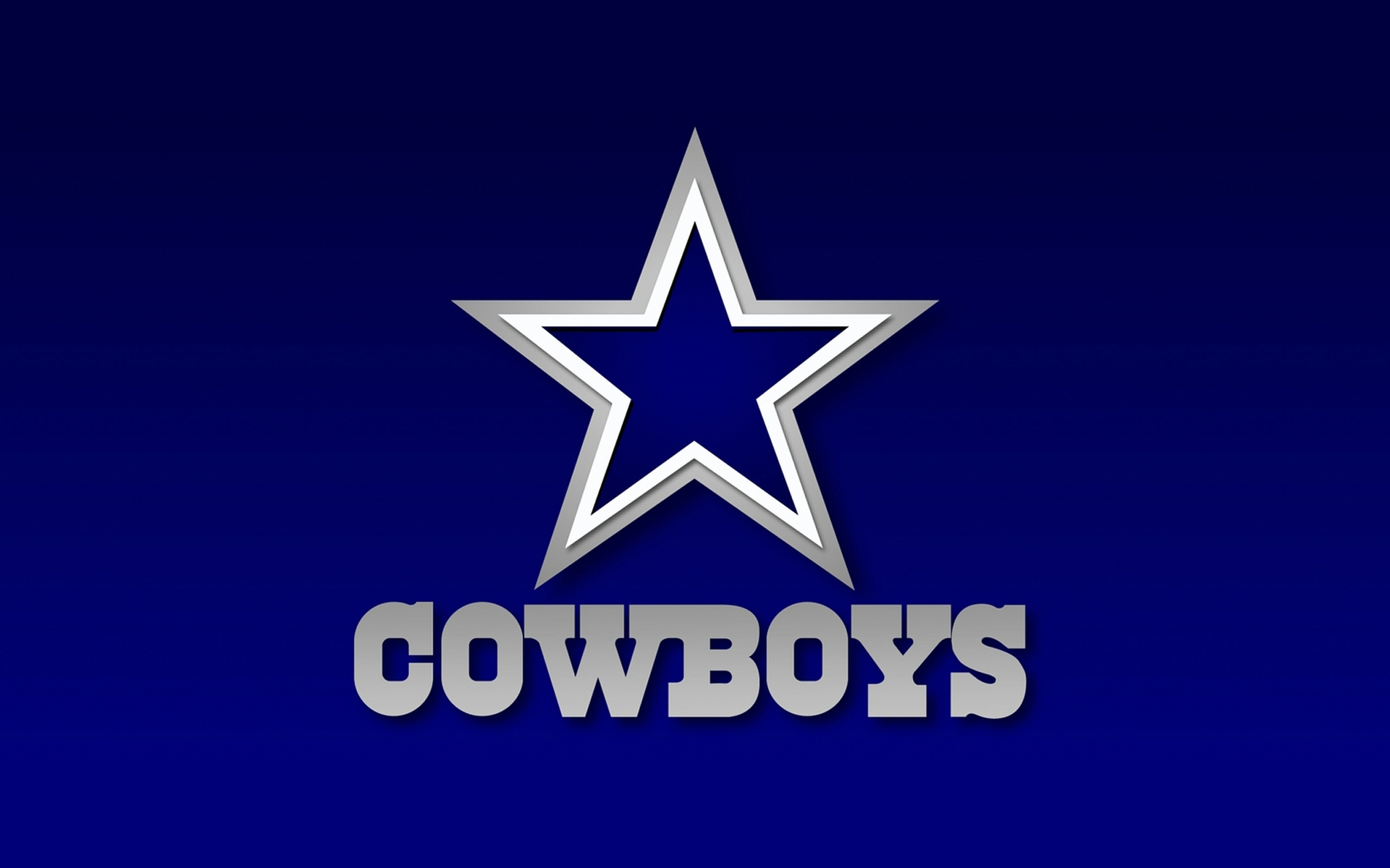 Description: A blue background with a silver star and the word cowboys on it's side.