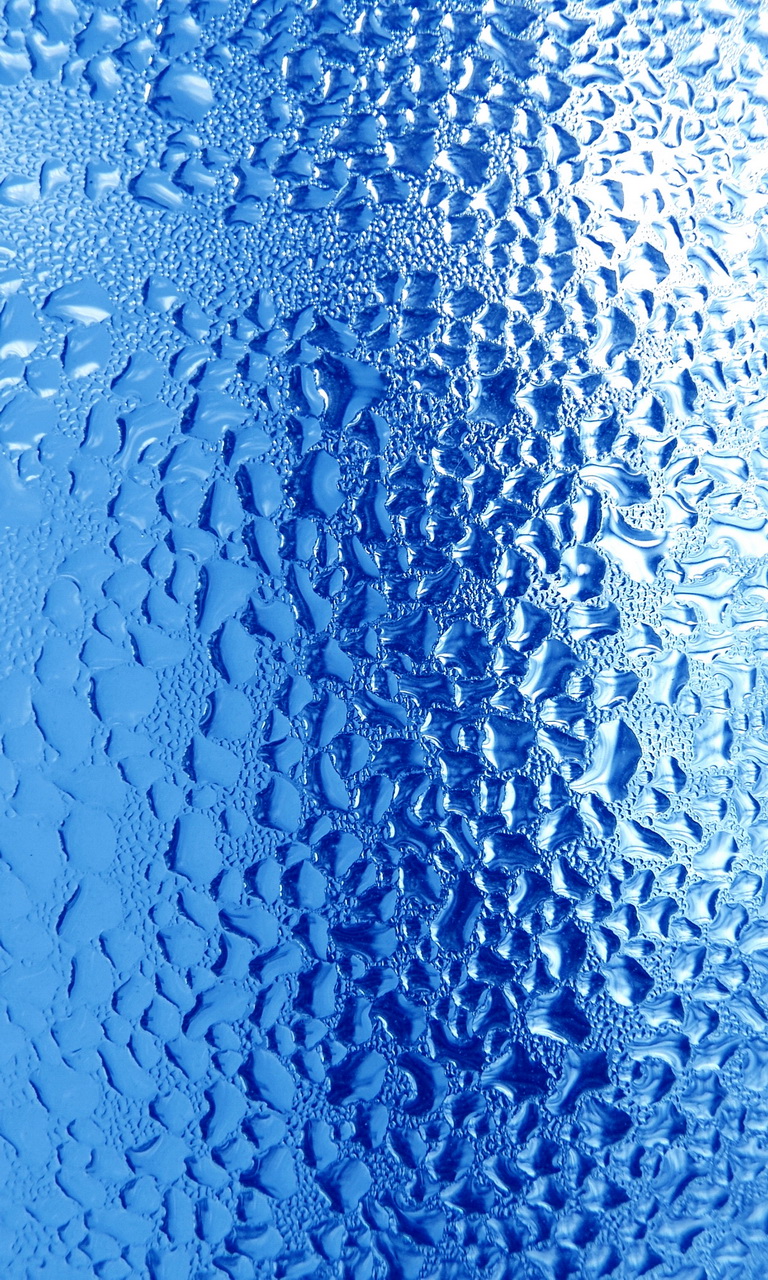 Description: A blue background with water drops on it and a blue sky in the background with a few clouds in the sky.